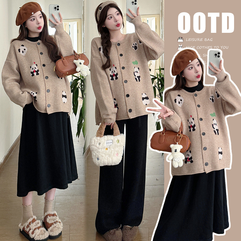 Модная панда корейская свободная вязаная кардиган дикий топ мягкий клейкий свитер куртка