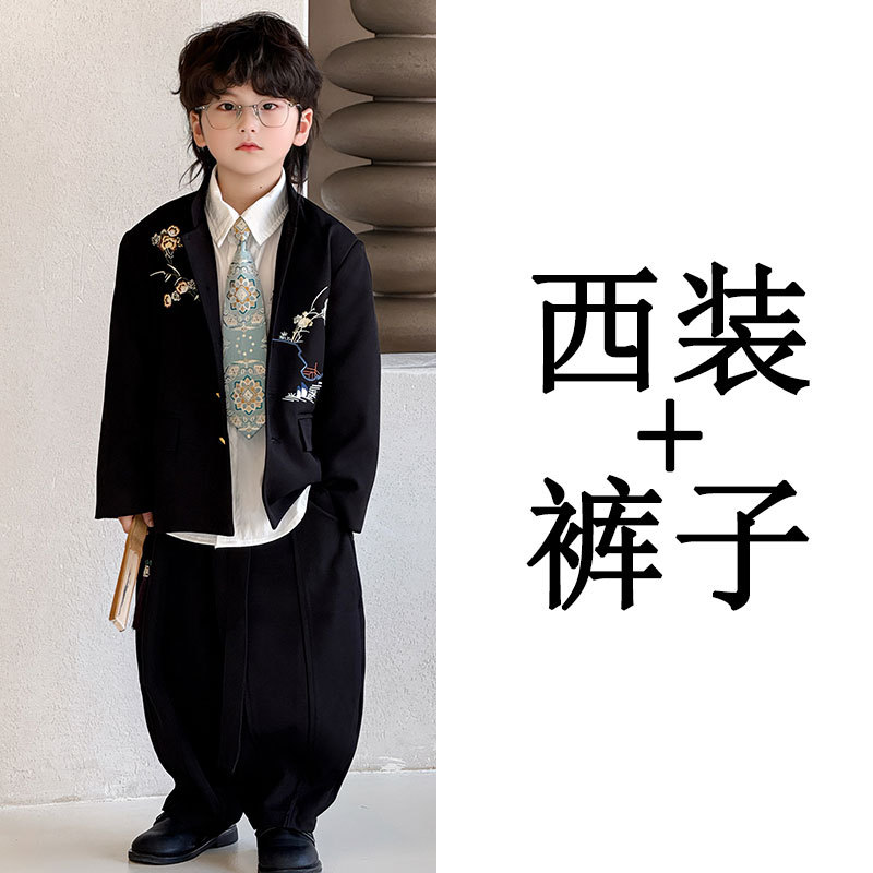 Костюм для мальчиков 2025 Весенний и Осенний стиль Новый китайский воротник вышивка