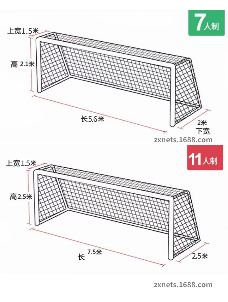Безузкие полиэфирные полипропиленовые PP футбольные сети внутри и снаружи 11 человек, 8 человек, 7 человек, 5 человек, долговечные и жирные футбольные сети