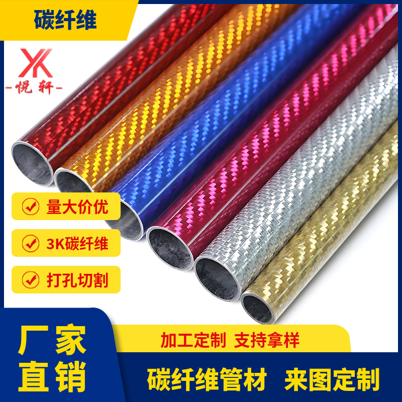 Красочная трубка из углеродного волокна 3K, составной материал из яркого волокна, механическое оборудование, полая круглая трубка, полностью трубка из углеродного волокна.