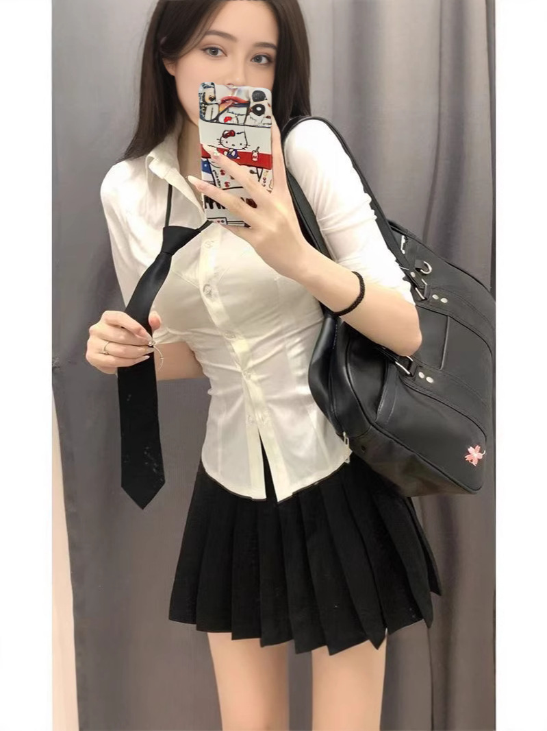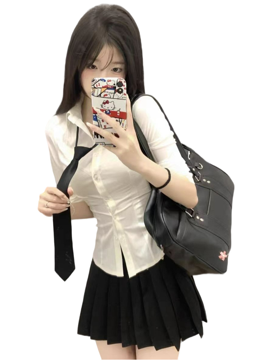 Чистый ветер jk униформа рубашка сладкая пряная школа стиль оригинальная короткая юбка с длинными рукавами, тонкая горячая девушка топ женский