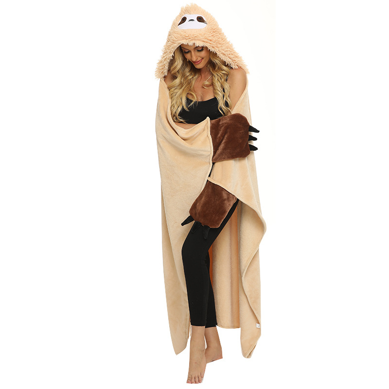 Зимний досуг с капюшоном фланец бархатное одеяло верблюжье ТВ одеяло Blanket ленивый плащ мультфильм животное одеяло