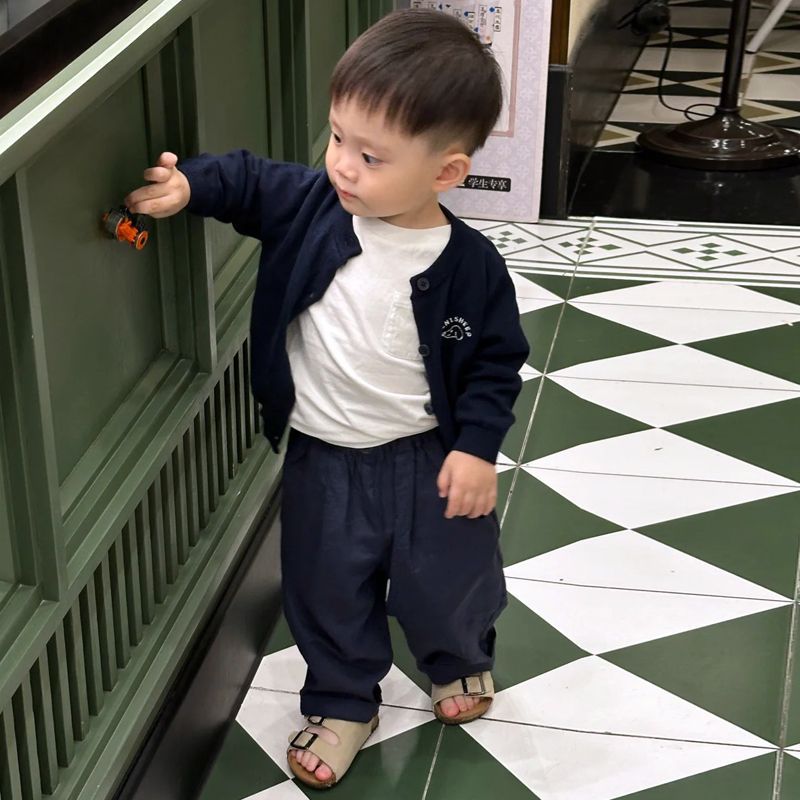 Детский костюм осенний новый стиль иностранная мода милый мультфильм мальчик мода вышивка кардиган повседневные брюки для девочек
