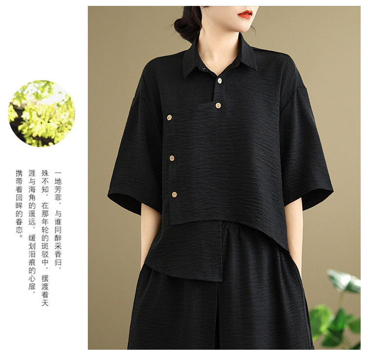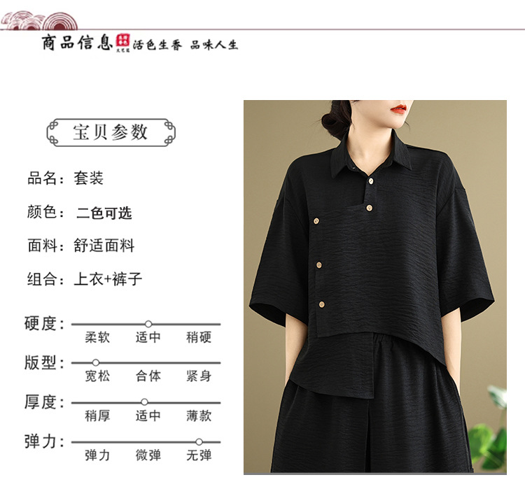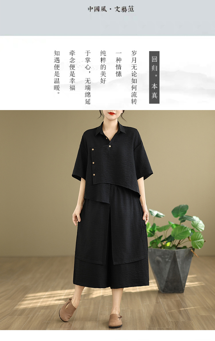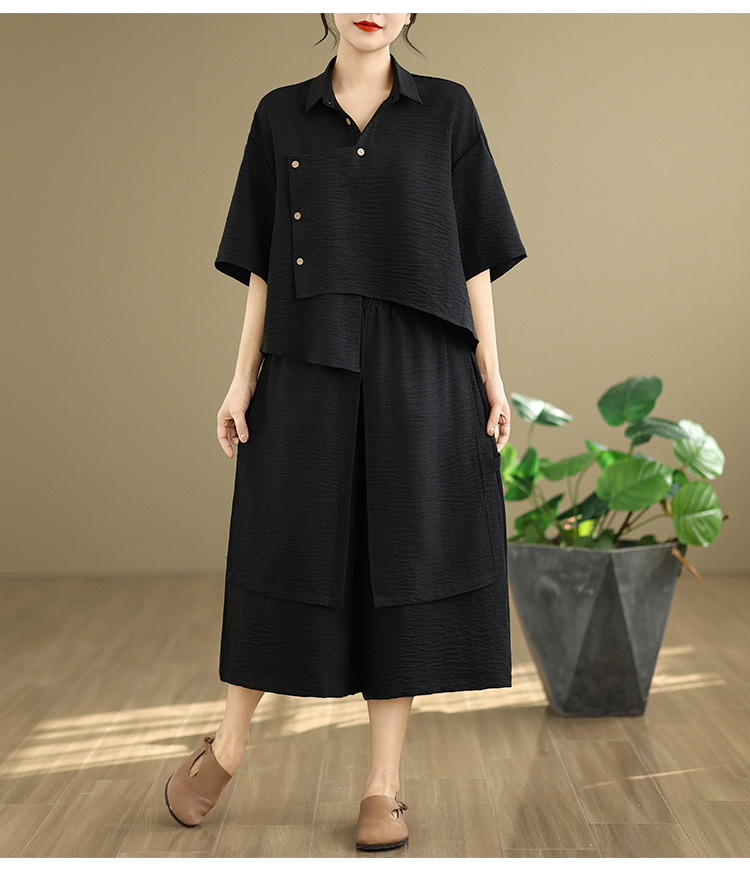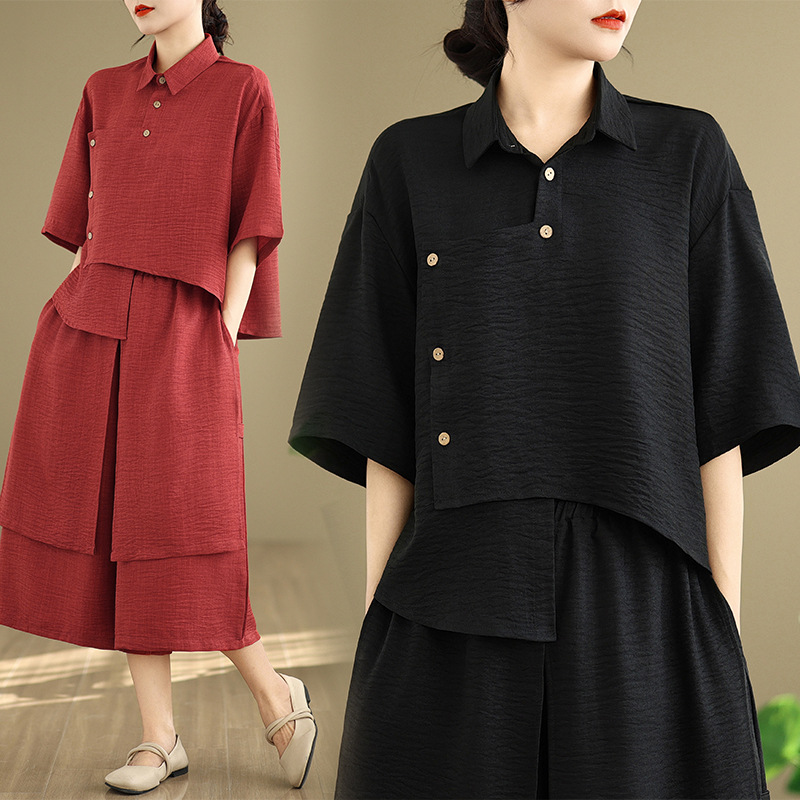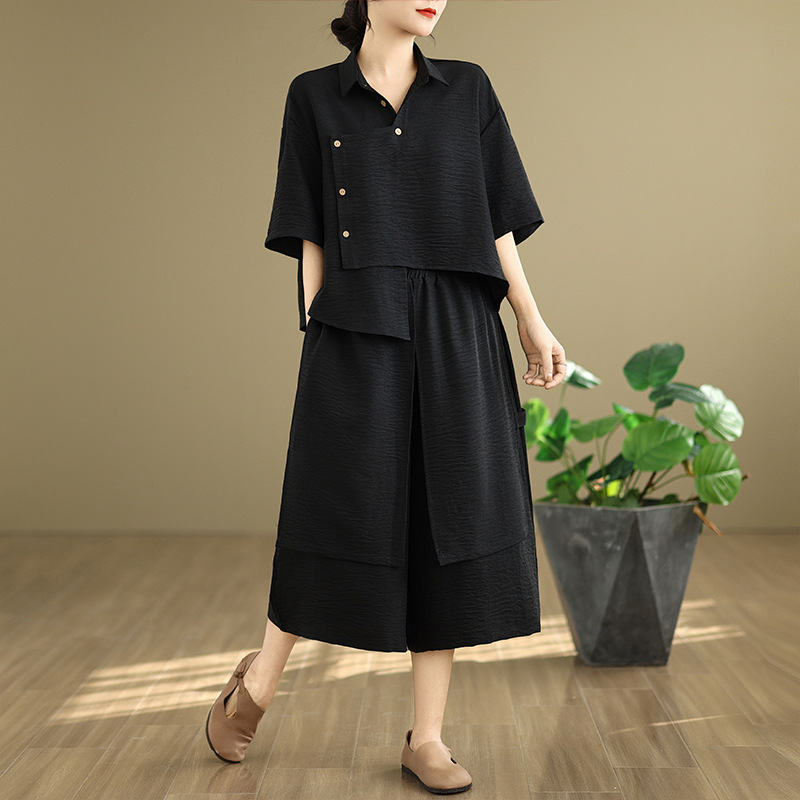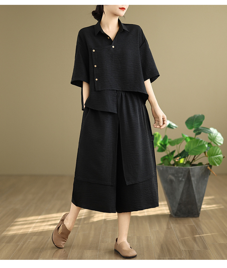 Реальные фото: Новинка весна-лето 2026 – свободный асимметричный топ в художественном стиле и широкие брюки на резинке, повседневный женский комплект из двух предметов.