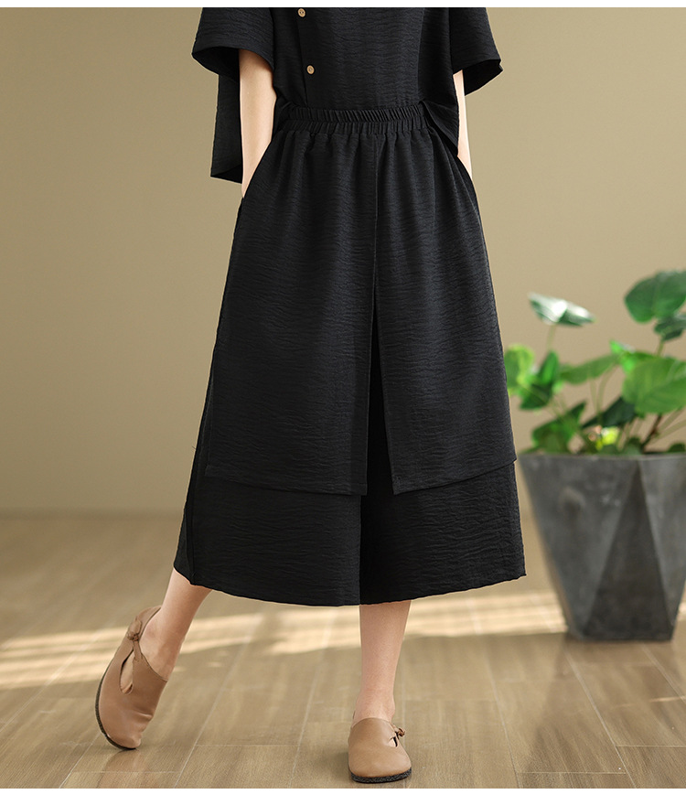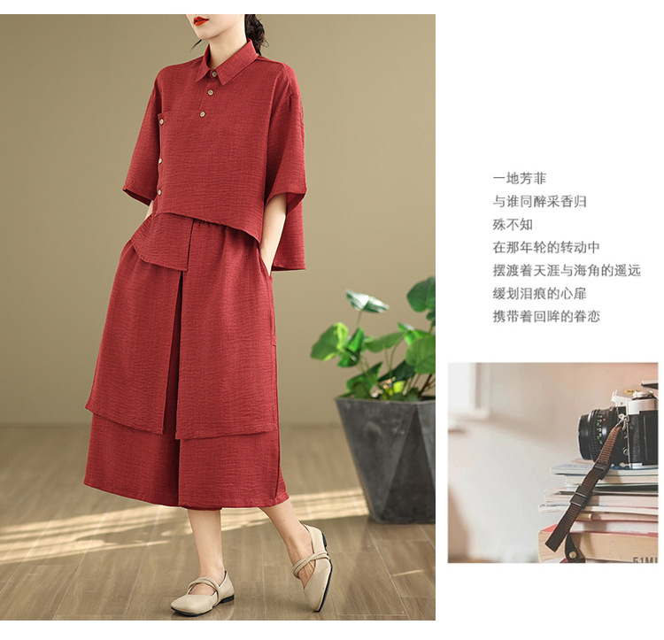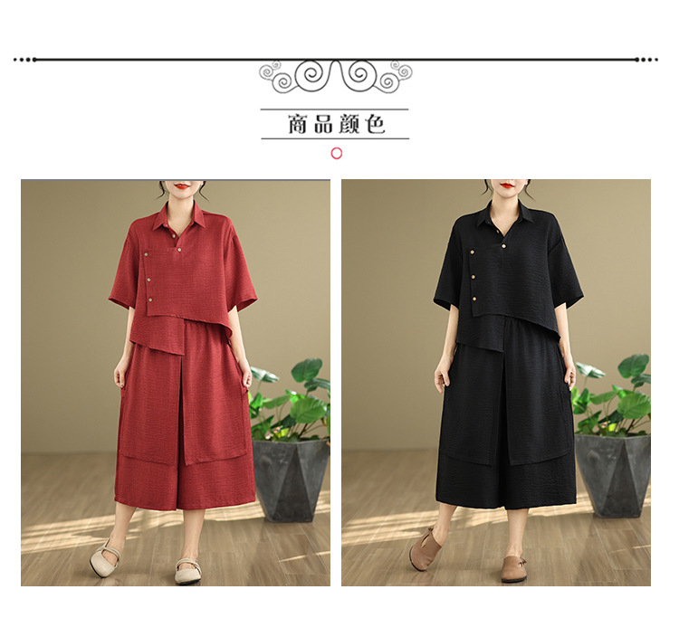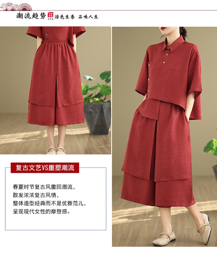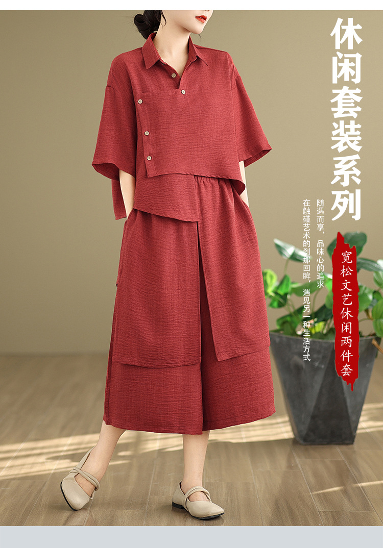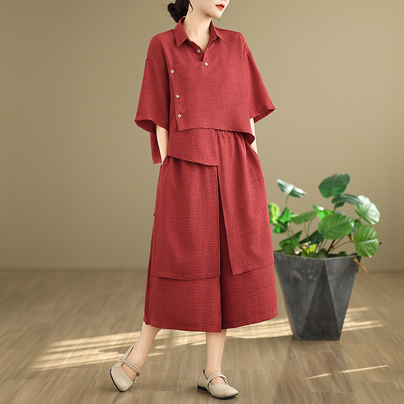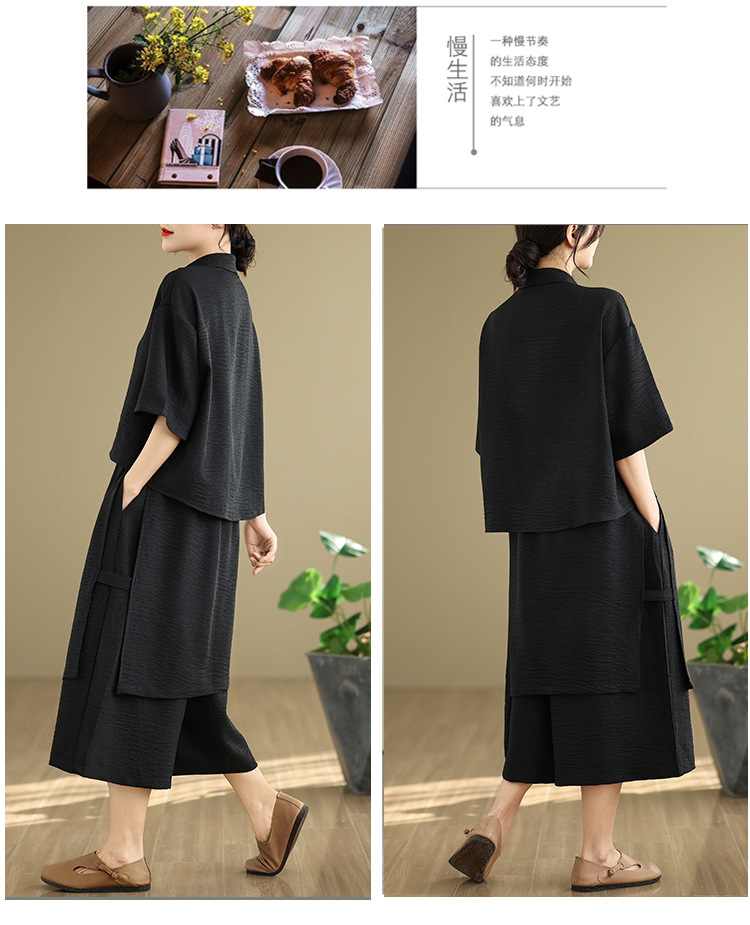 Реальные фото: Новинка весна-лето 2026 – свободный асимметричный топ в художественном стиле и широкие брюки на резинке, повседневный женский комплект из двух предметов.