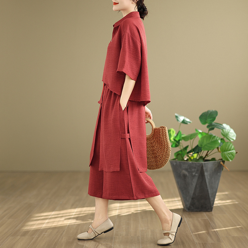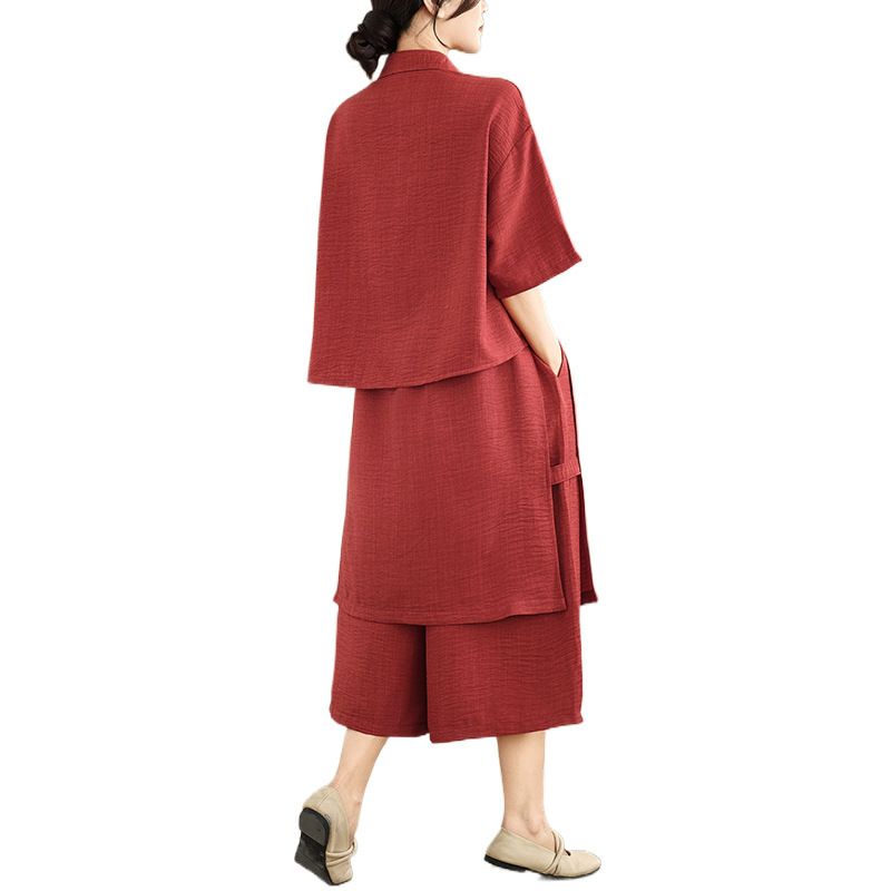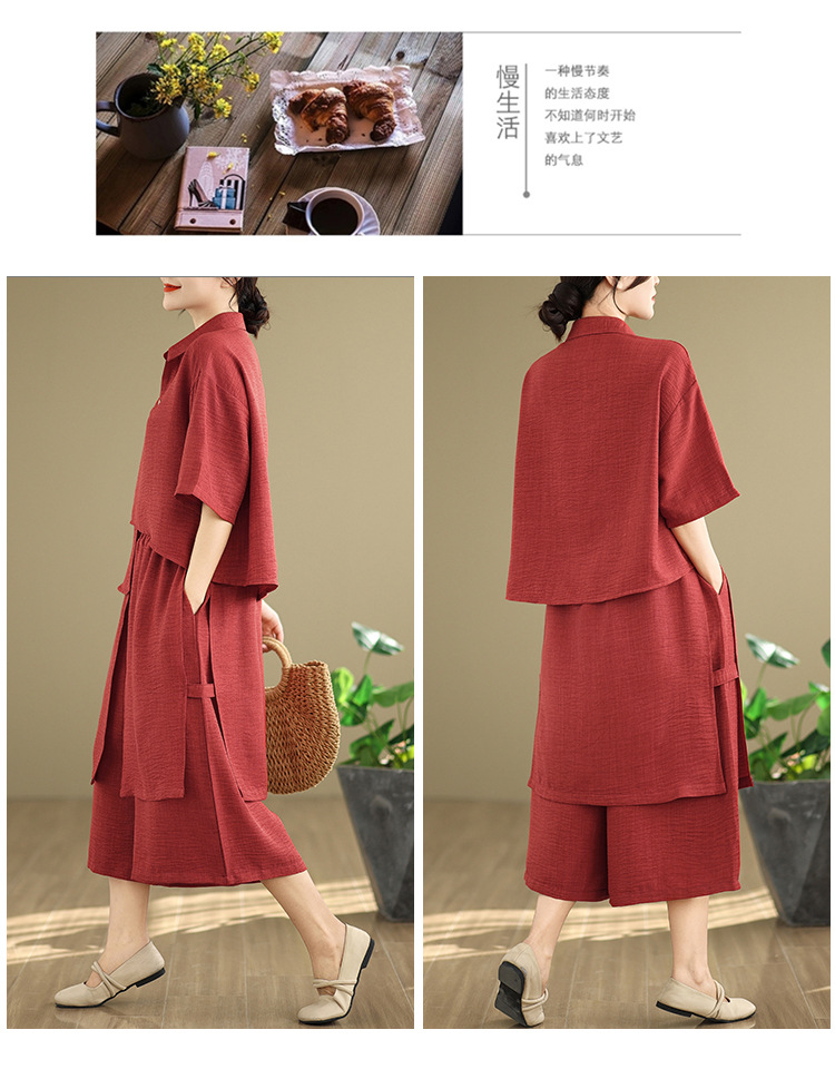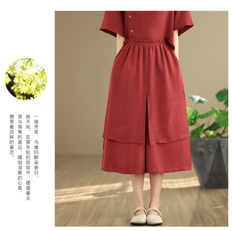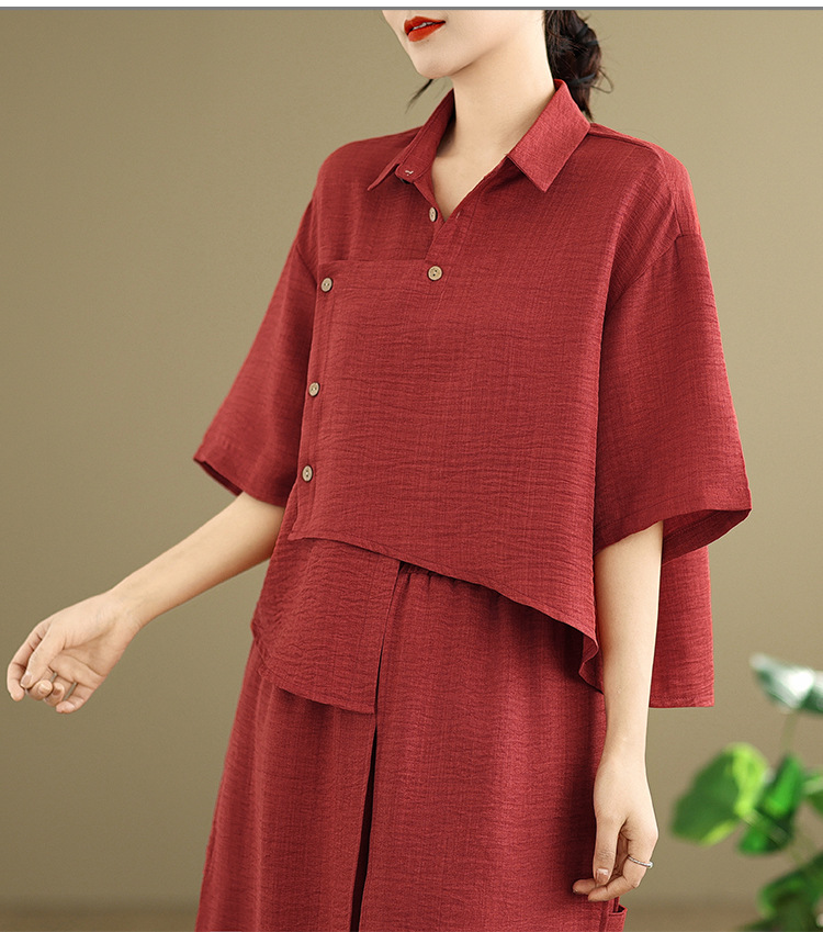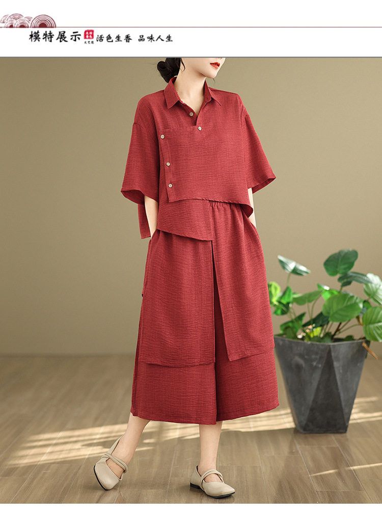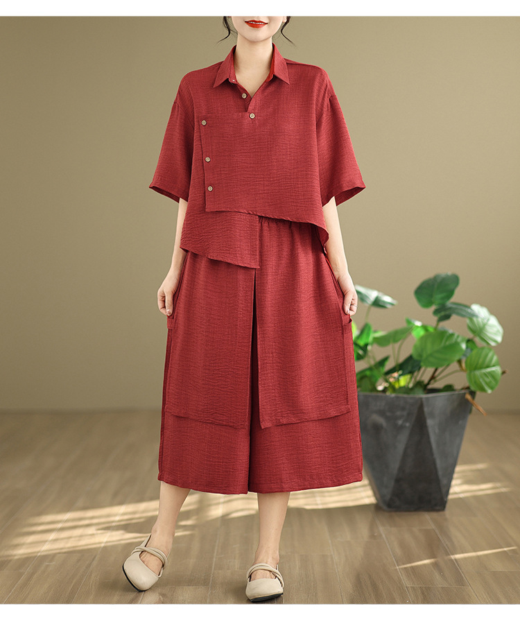 Реальные фото: Новинка весна-лето 2026 – свободный асимметричный топ в художественном стиле и широкие брюки на резинке, повседневный женский комплект из двух предметов.