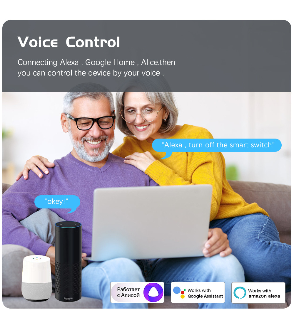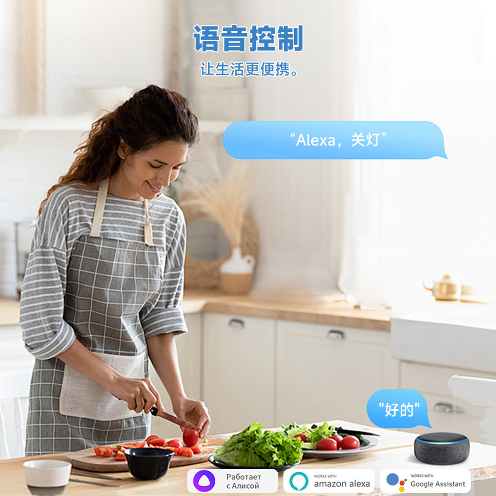 支持天猫精灵、Alexa、Google Home等语音助手,实现开关等功能; “Alexa,打开厨房灯。”一句话就能开灯,享受便捷的智能生活。