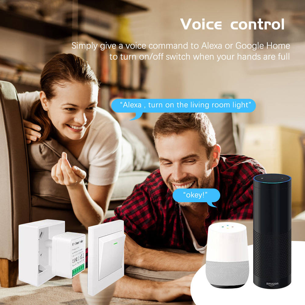 比如把台灯改装成智能台灯,手机就可以控制灯的开关。要将筒灯变成智能筒灯,只需要在开关上连接一个智能开关模块,然后Alexa/Google助手就可以控制灯的开关。