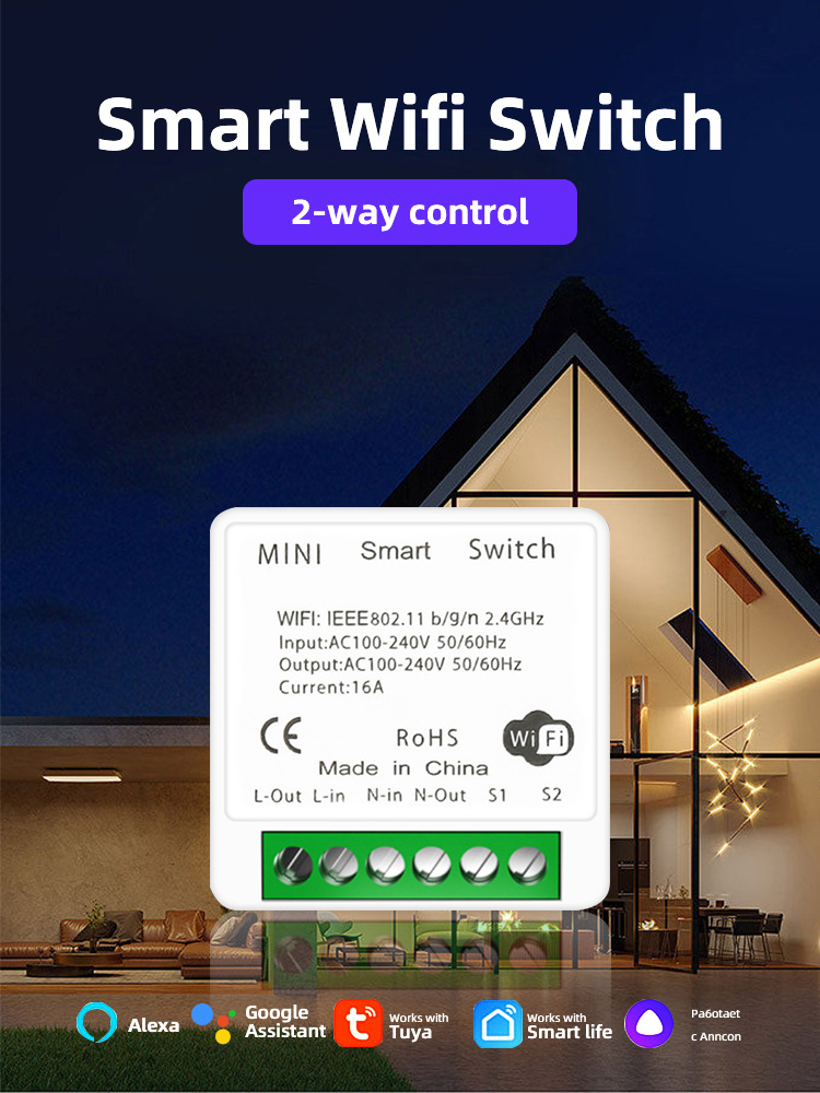 也可以接在开关后面,支持单控开关和双控开关。可直接安装在开关盒内,隐藏开关模块。也可以安装在双控开关上,不影响双控开关的使用。