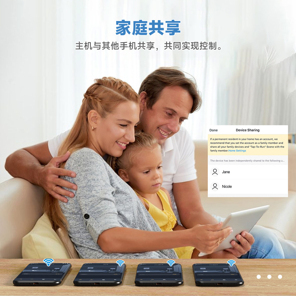 主账号可与其他家庭成员共享,功能和设置完全保留和复制;安全性:一旦主账号添加灯,灯将被隐藏,其他用户无法再找到和添加;在其他人可以使用它之前,它需要被主动共享。
