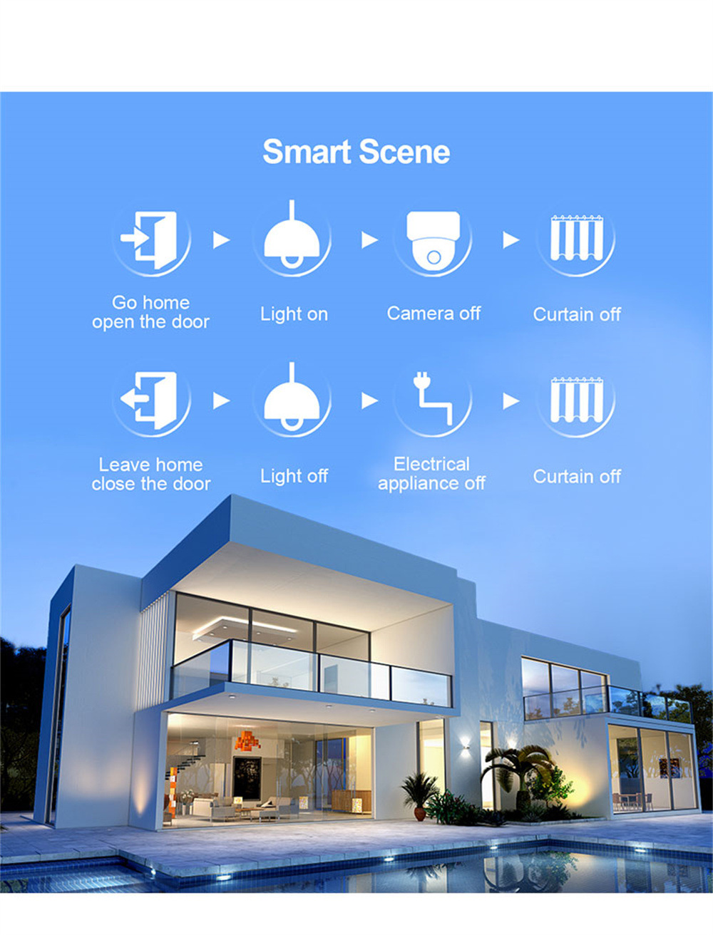 通过设置,可以与其他智能场景联动,让生活更智能;比如设置家居场景:自动打开客厅灯、电视、空调。