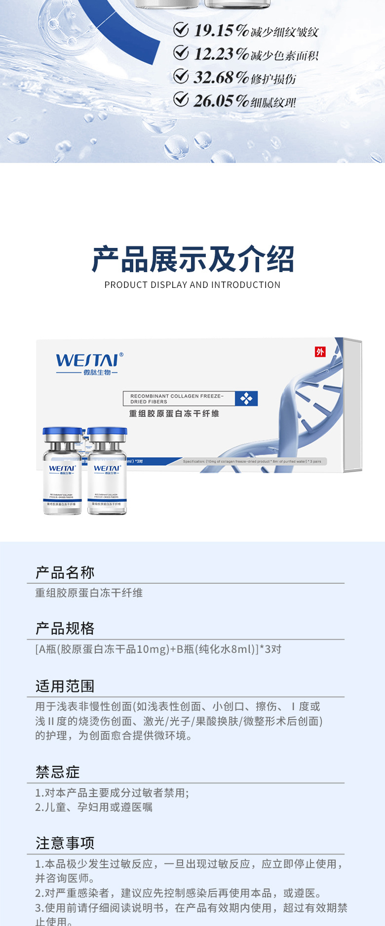 Медицинский рекомбинантный коллаген лиофилизированные волокна