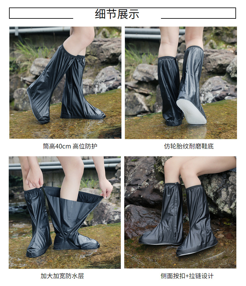 В наличии оптом: унисекс-чехлы для обуви от дождя, высокие, из утолщенного ПВХ, водонепроницаемые, длинные, нескользящие и износостойкие.