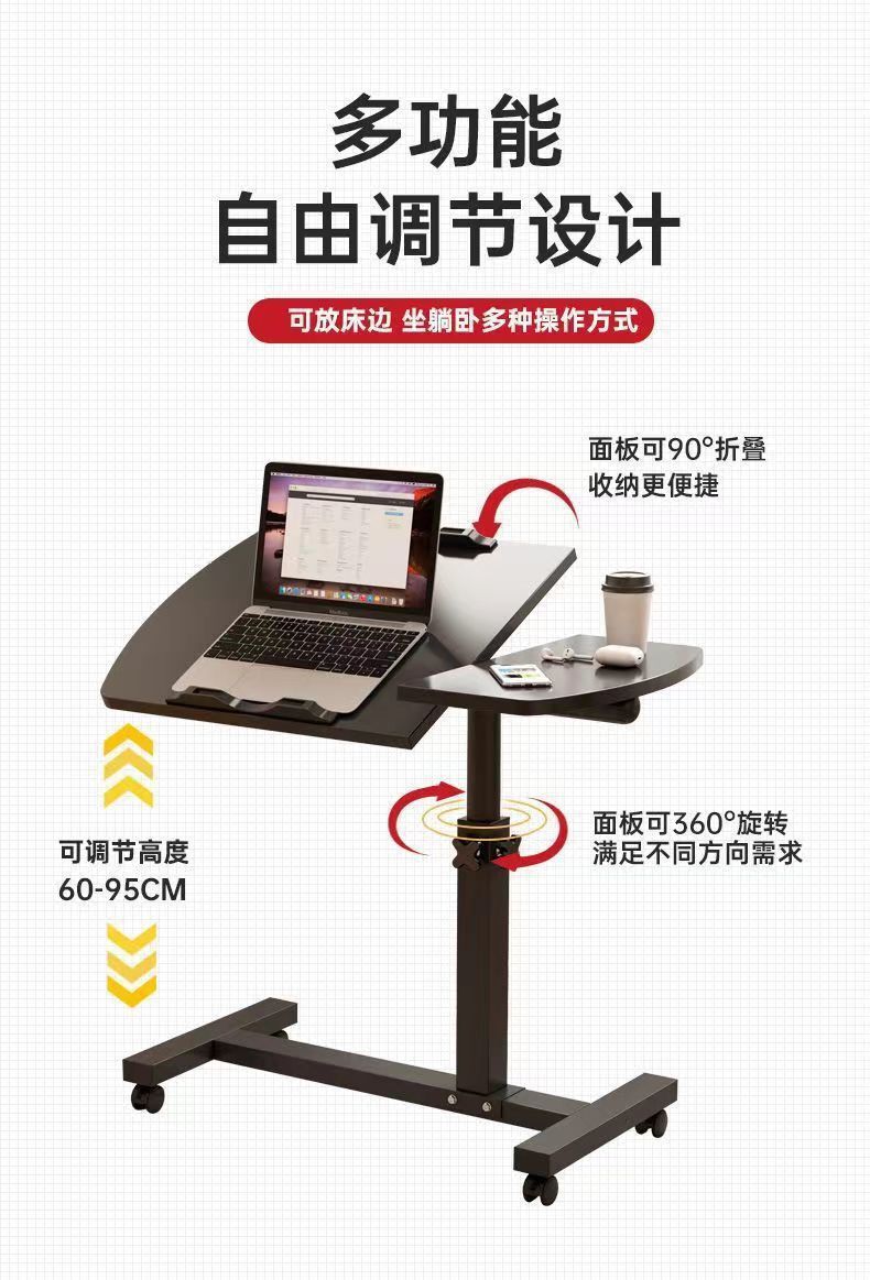 床边桌可移动可翻转可调节升降桌笔记本电脑桌沙发边落地家用桌子
