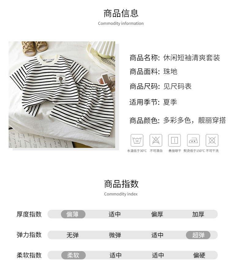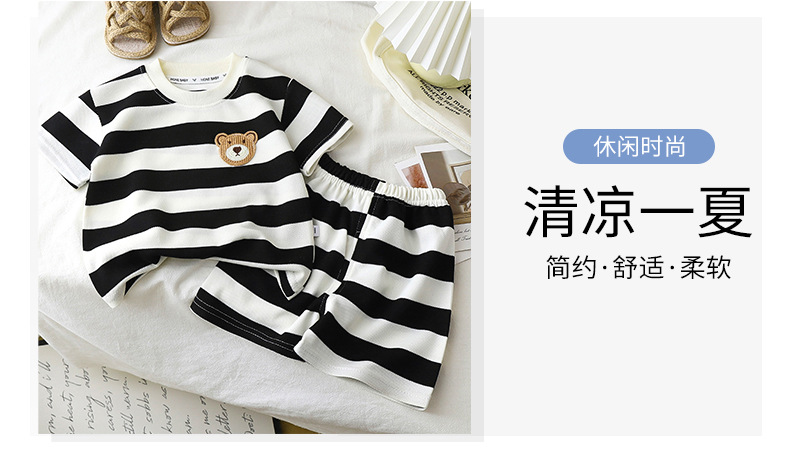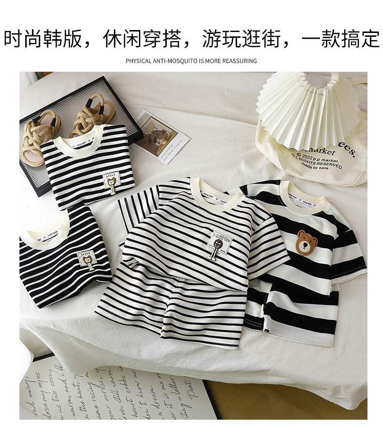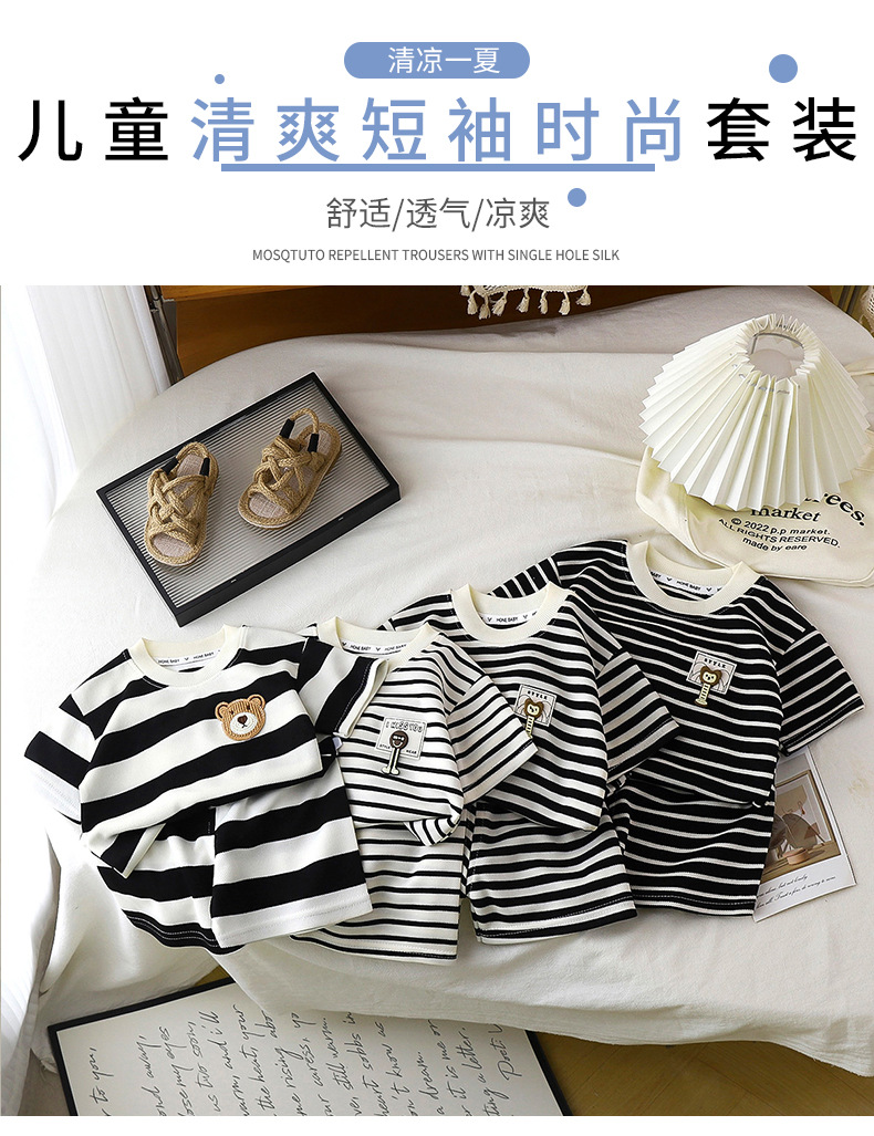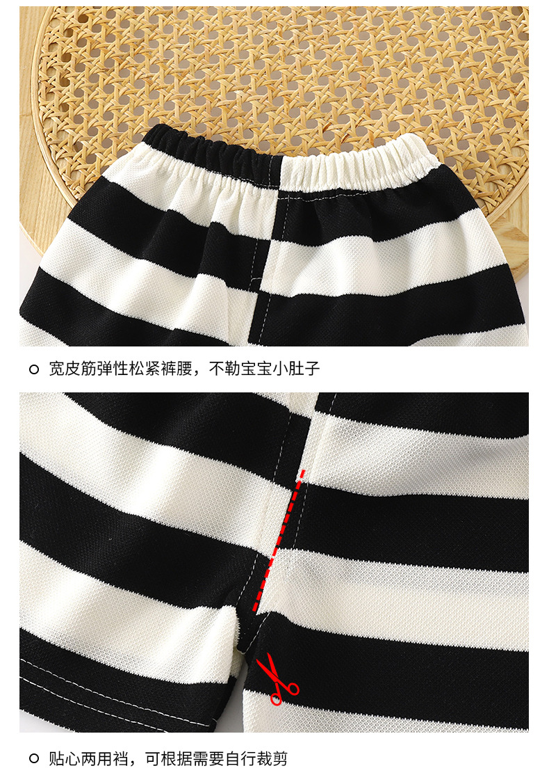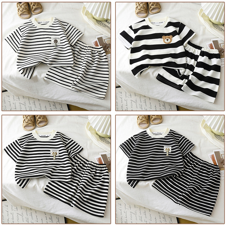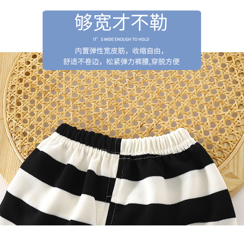 Новый детский полосатый набор летний мальчик и мальчик ребенок черно-белый полосатый дышащий тонкий короткий рукав шорты набор из двух частей