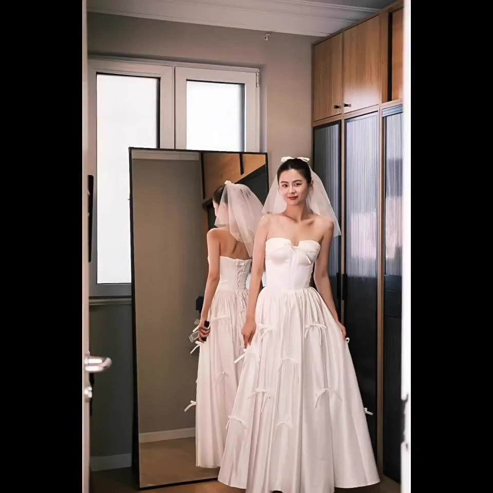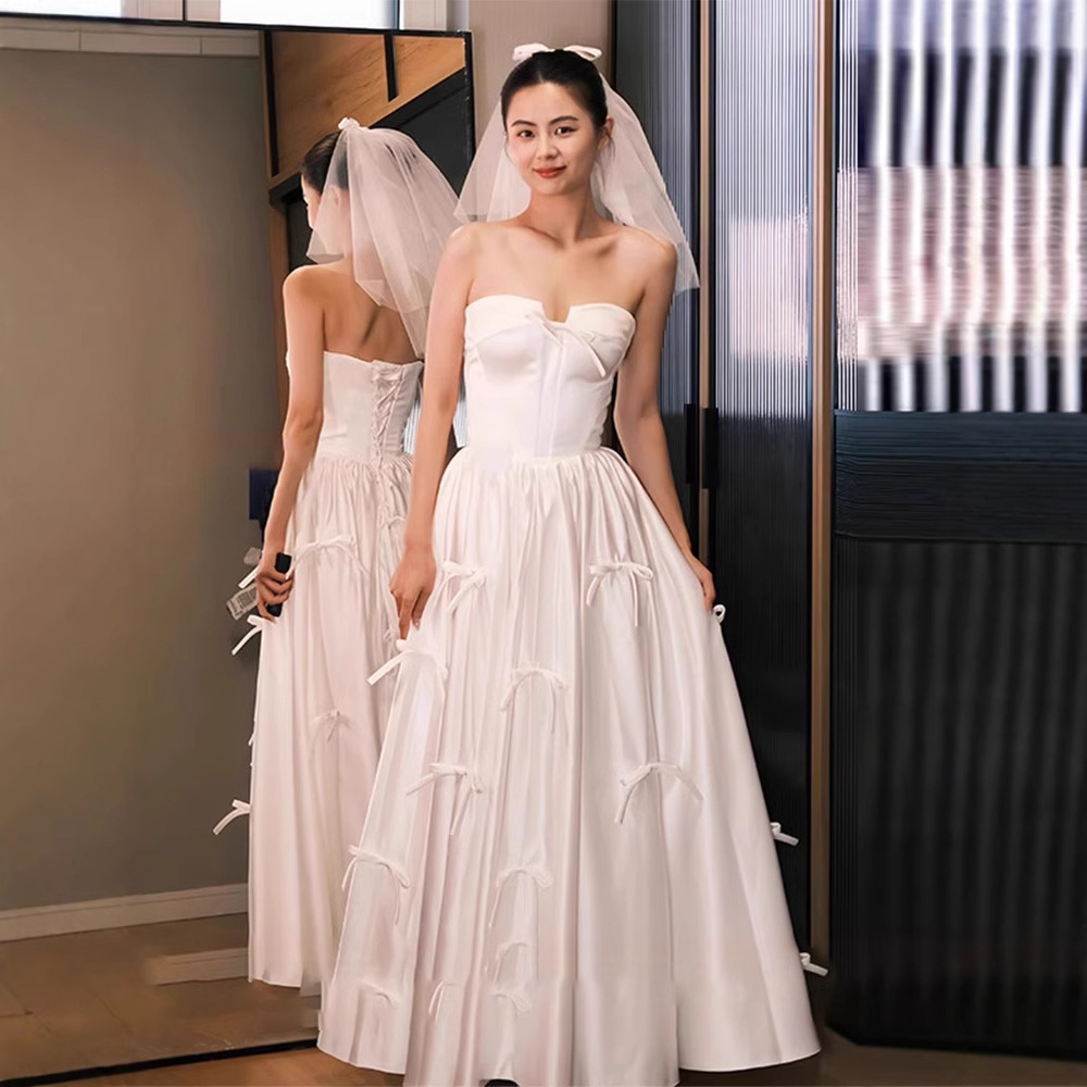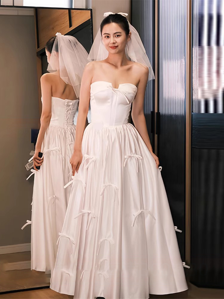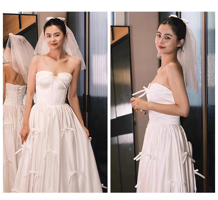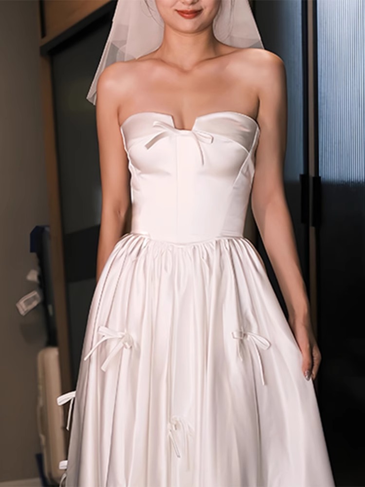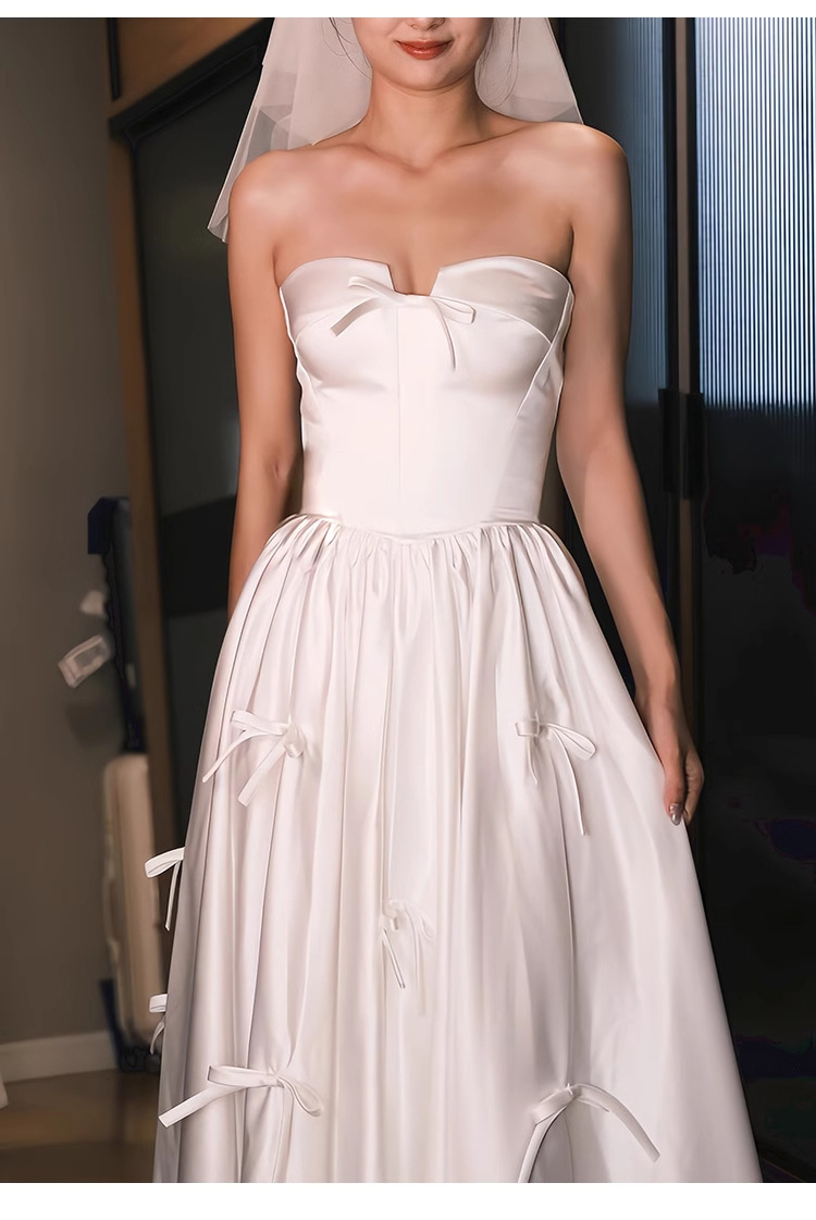 Французское белое светлое свадебное платье с длинным темпераментом элегантный атласный свадебное платье для свадебной поездки