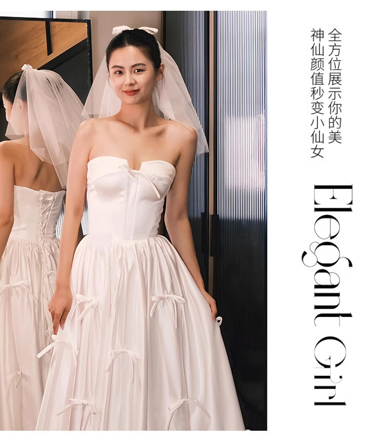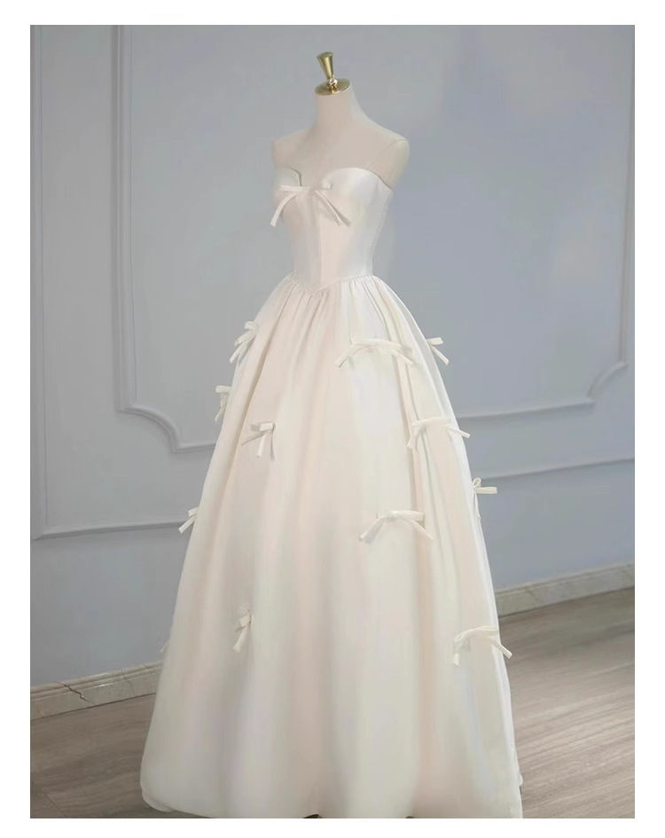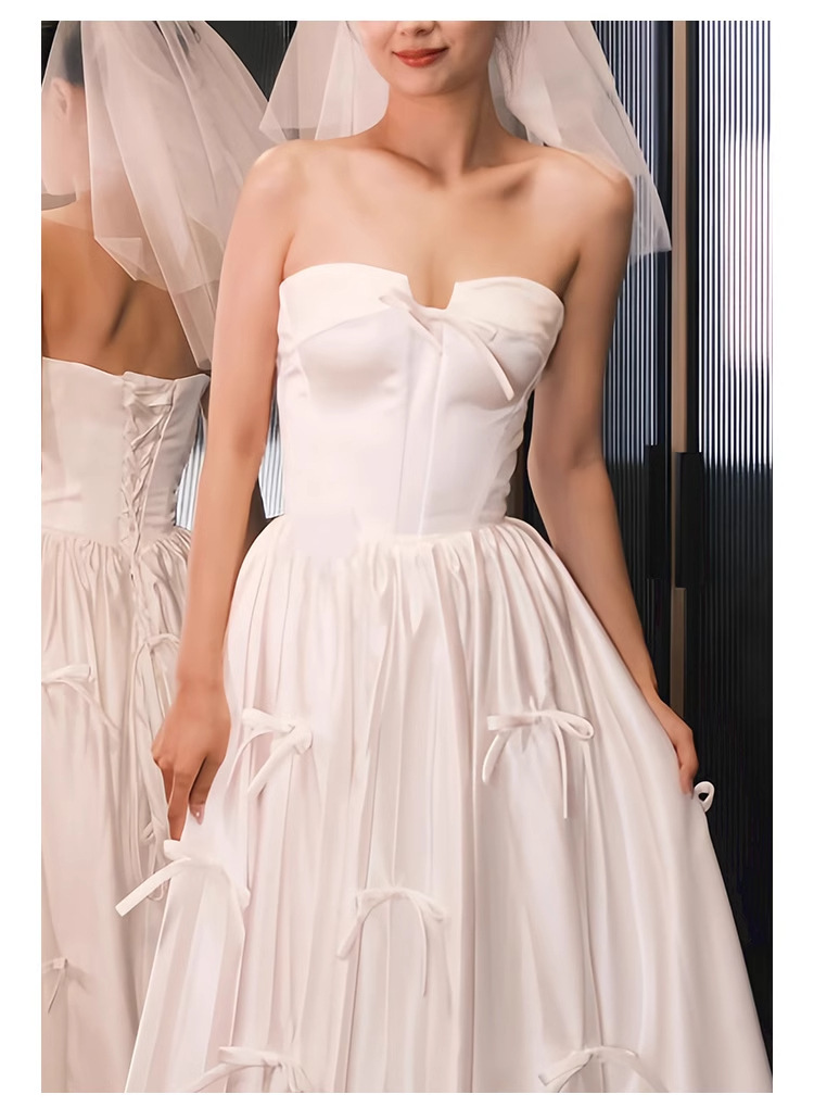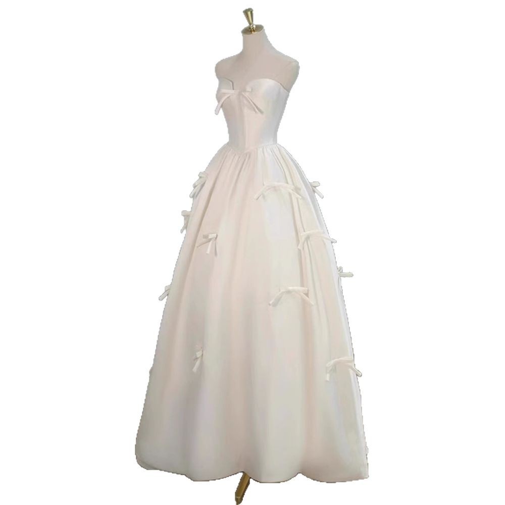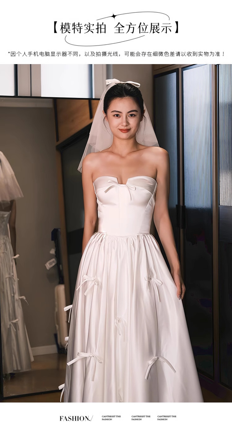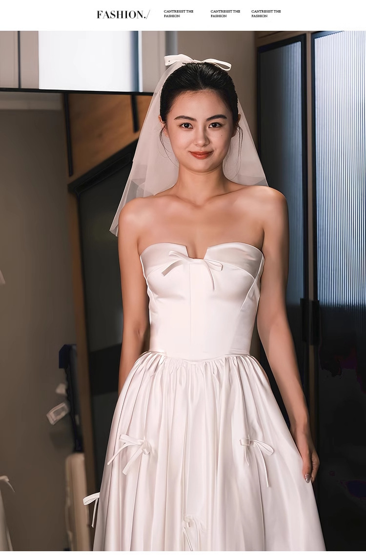 Французское белое светлое свадебное платье с длинным темпераментом элегантный атласный свадебное платье для свадебной поездки