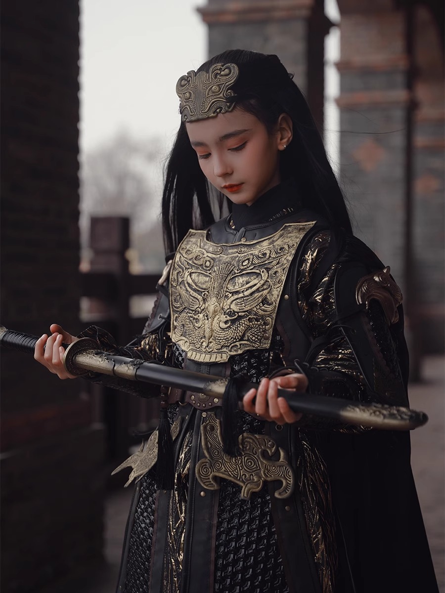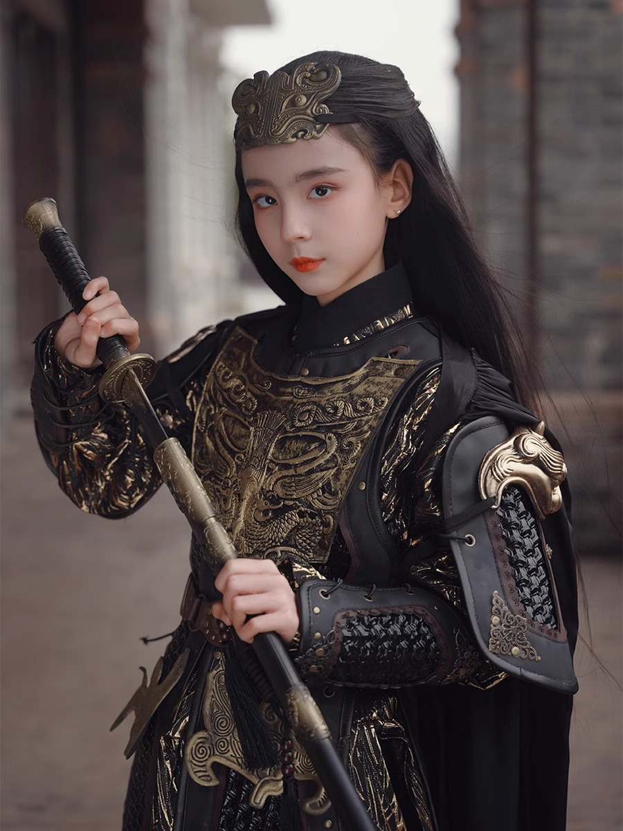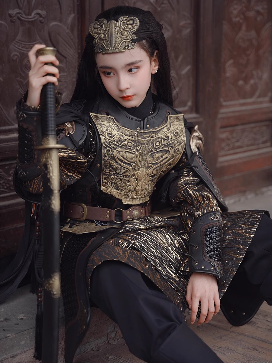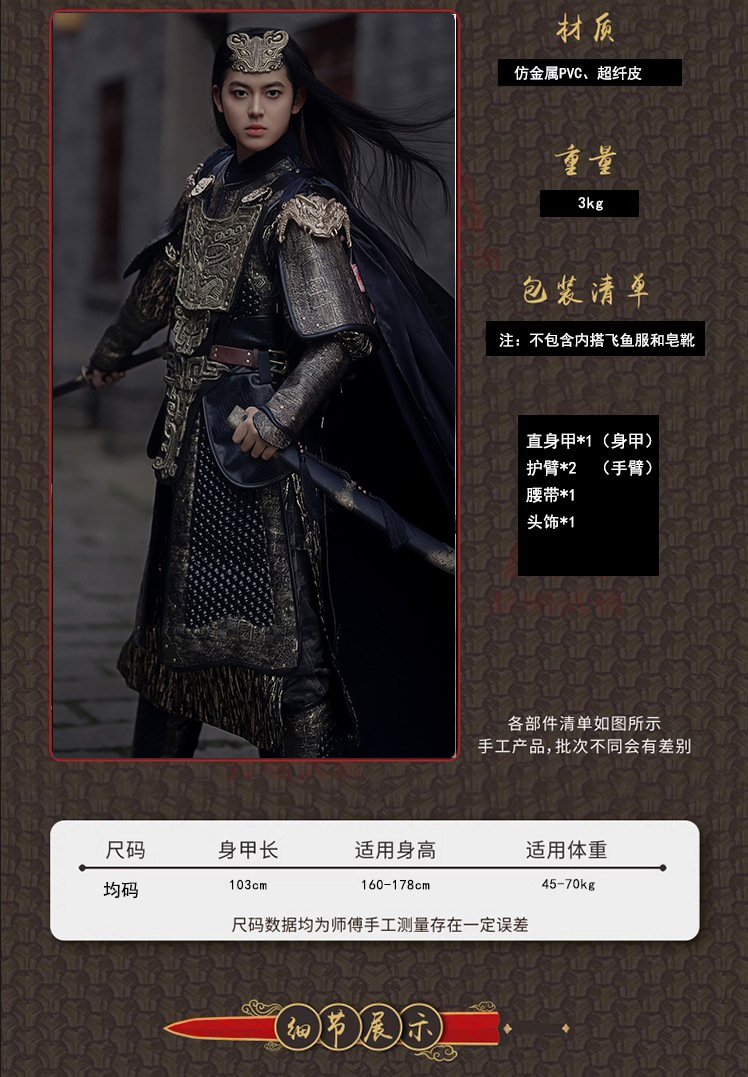 Доспехи имитации Дэн Чанью из черного золота для взрослых (без плаща, внутренней одежды); Костюм из имитации доспехов Дэн Чанью из черного золота для взрослых (включая плащ, внутреннюю одежду)