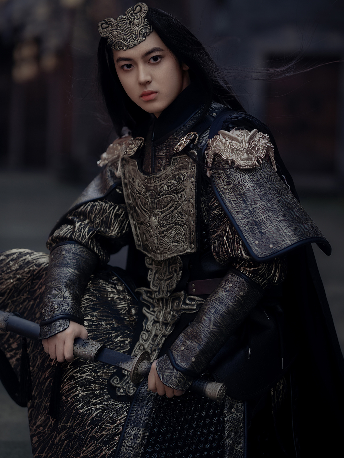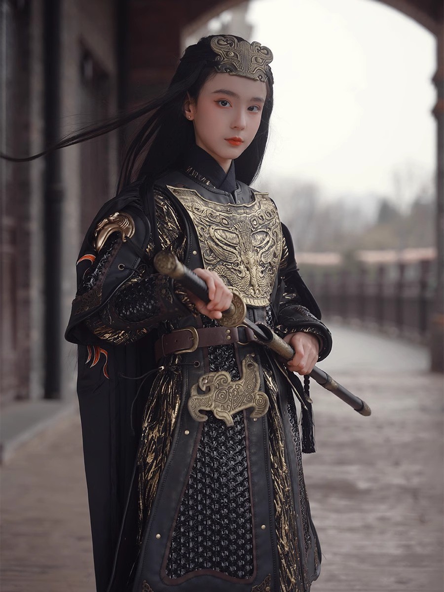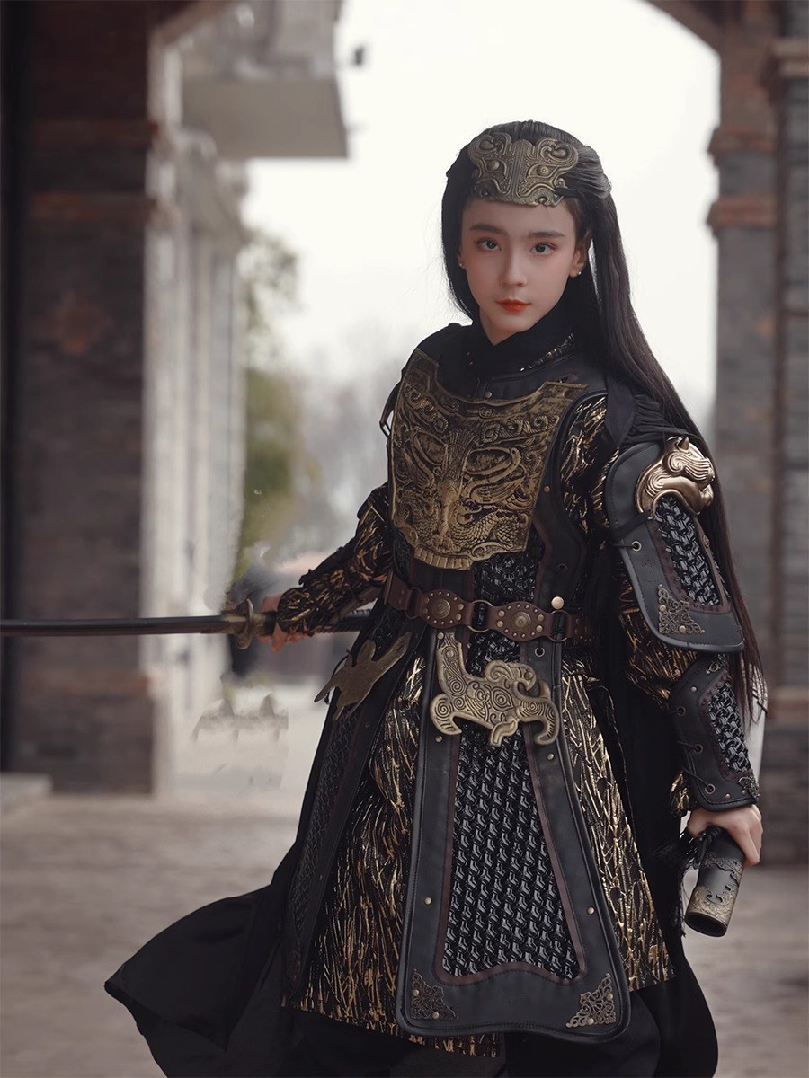 Доспехи имитации Дэн Чанью из черного золота для взрослых (без плаща, внутренней одежды); Костюм из имитации доспехов Дэн Чанью из черного золота для взрослых (включая плащ, внутреннюю одежду)
