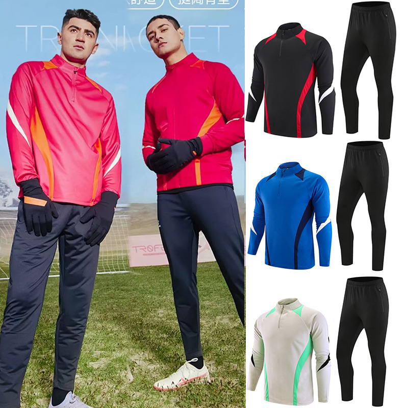 Новый набор спортивной одежды для футбола с полукругом с длинными рукавами легкоатлетический бег тренировочный костюм для взрослых детей чехлы свитера брюки