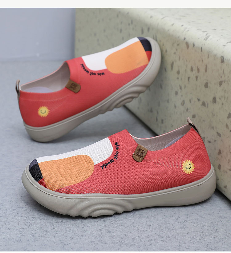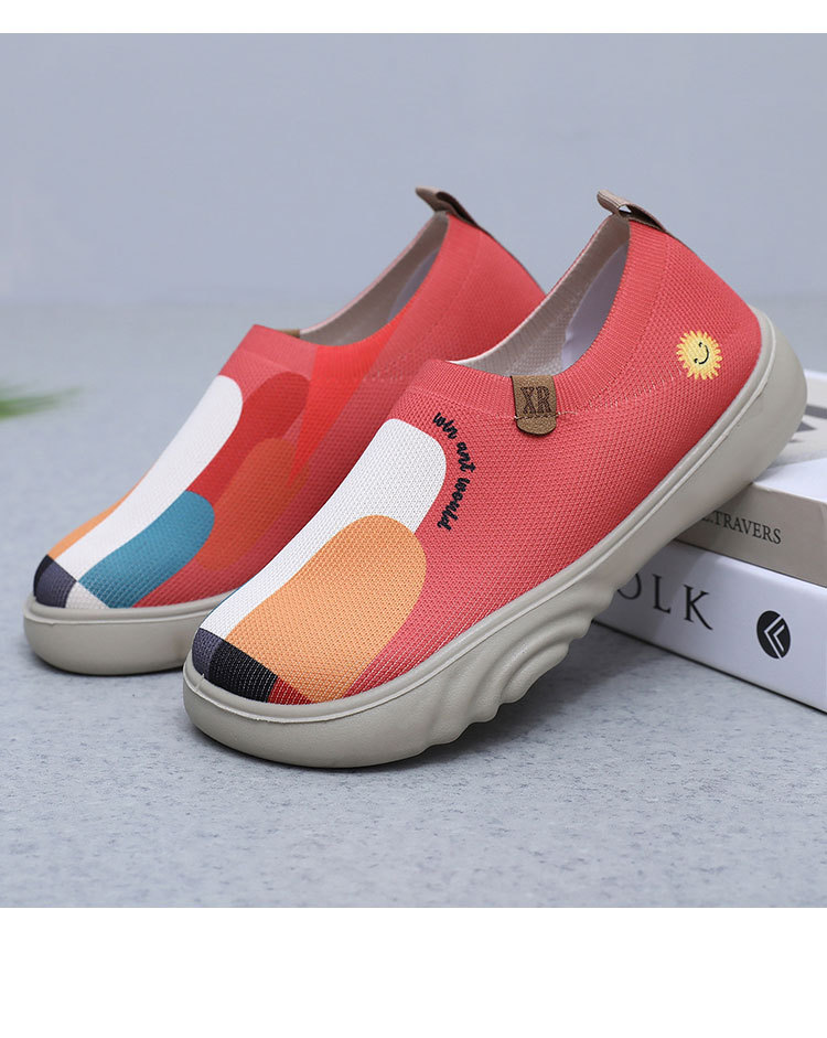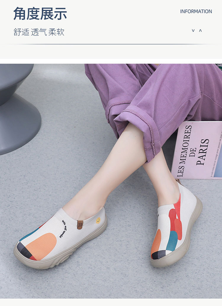 Обувь женская весна и осень 2025 новая тканая обувь повседневная летающая живопись одиночная обувь дышащая мягкая подошва модная женская обувь