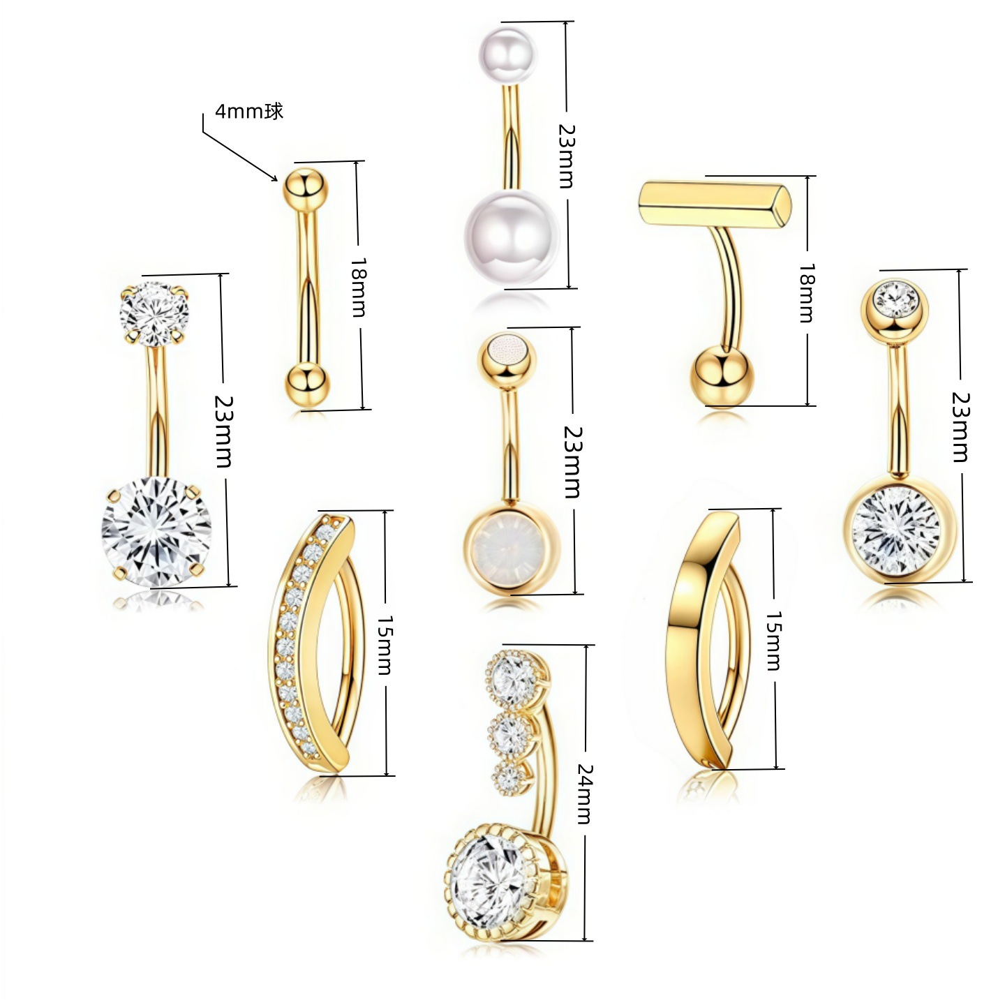 Оптовая продажа от производителя, популярный на Amazon, популярный пуговица для пупка, набор из 9 предметов, универсальное модное кольцо для пирсинга пупка, ювелирные изделия
