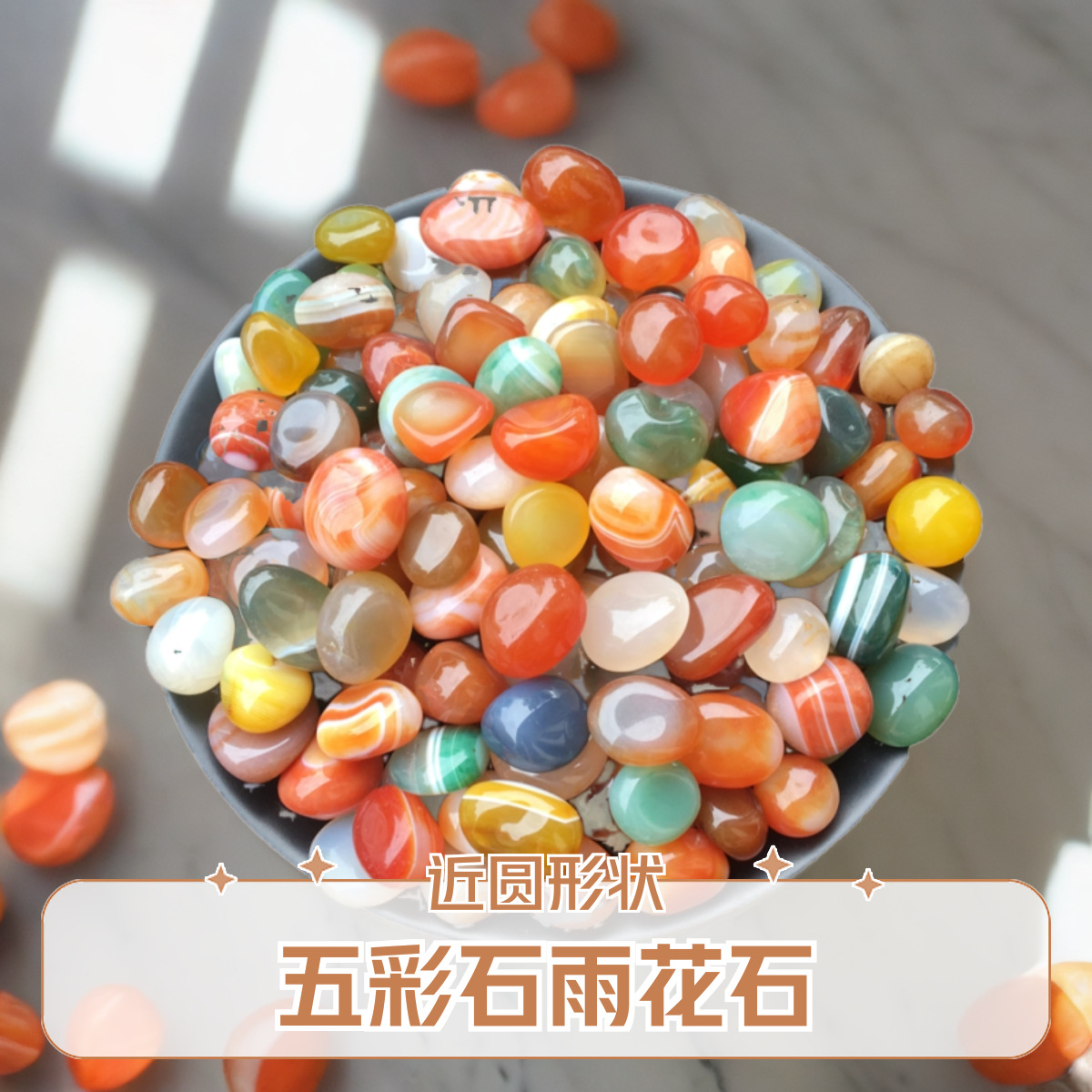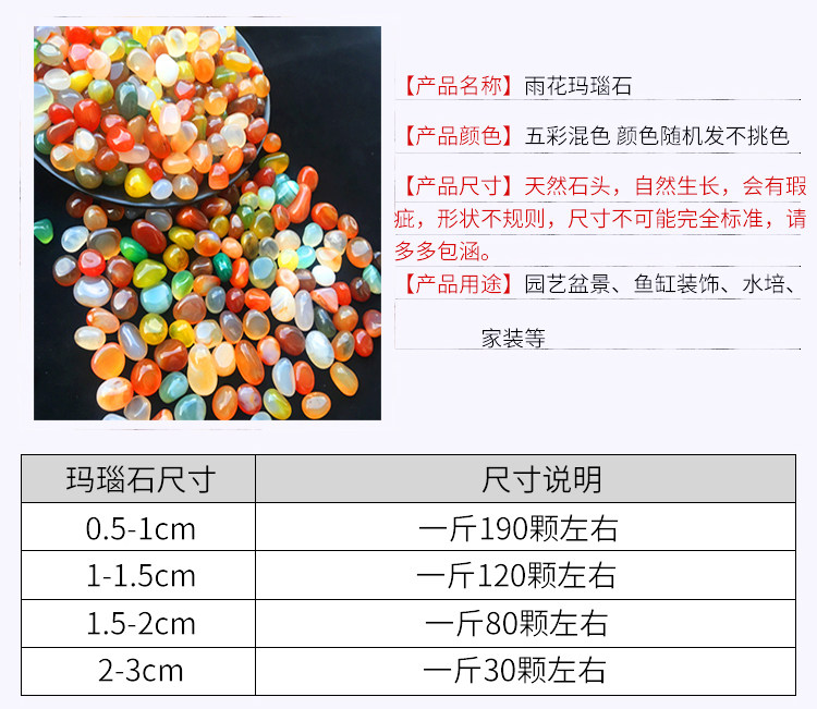 Мелкий цветной агат 0,5-1см.; Цвет классический агат 1-1,5см.; Тонкий цветной агат 1-1,6см.; Мелкий цветной агат 1,5-2см.; Красивый цветной агат 2-3см.; Мелкие кусочки цветного агата 0,5-1см.; Мелкий цветной агат 3-5см.; Цвет розового кварца 1,5-2см.; Цвет розового кварца 2-3см.; Зеленый 1,5-2см; Зеленый 2-3см; Овал 1-1,6 см; Цветной гравий 0,3- 0.7cm; Разноцветный сломанный агат 1- 1.8cm; Эллипс 1.4- 2cm