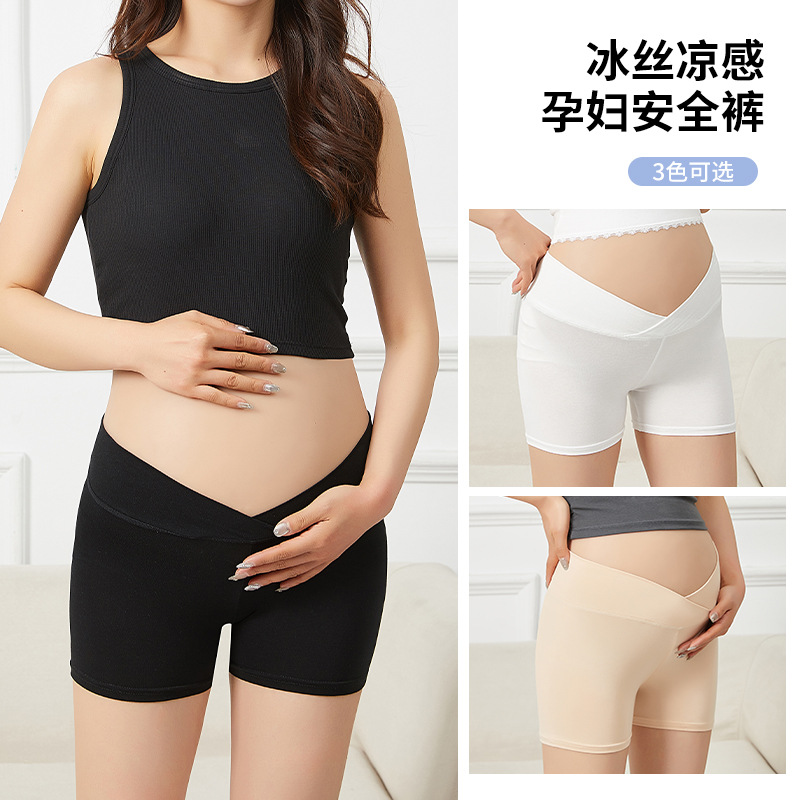 Беременные женские защитные брюки Летние трёхочковые леггинсы Гестериальный шелк Трусики Трусики Беременность Четырехугольные брюки Брюки
