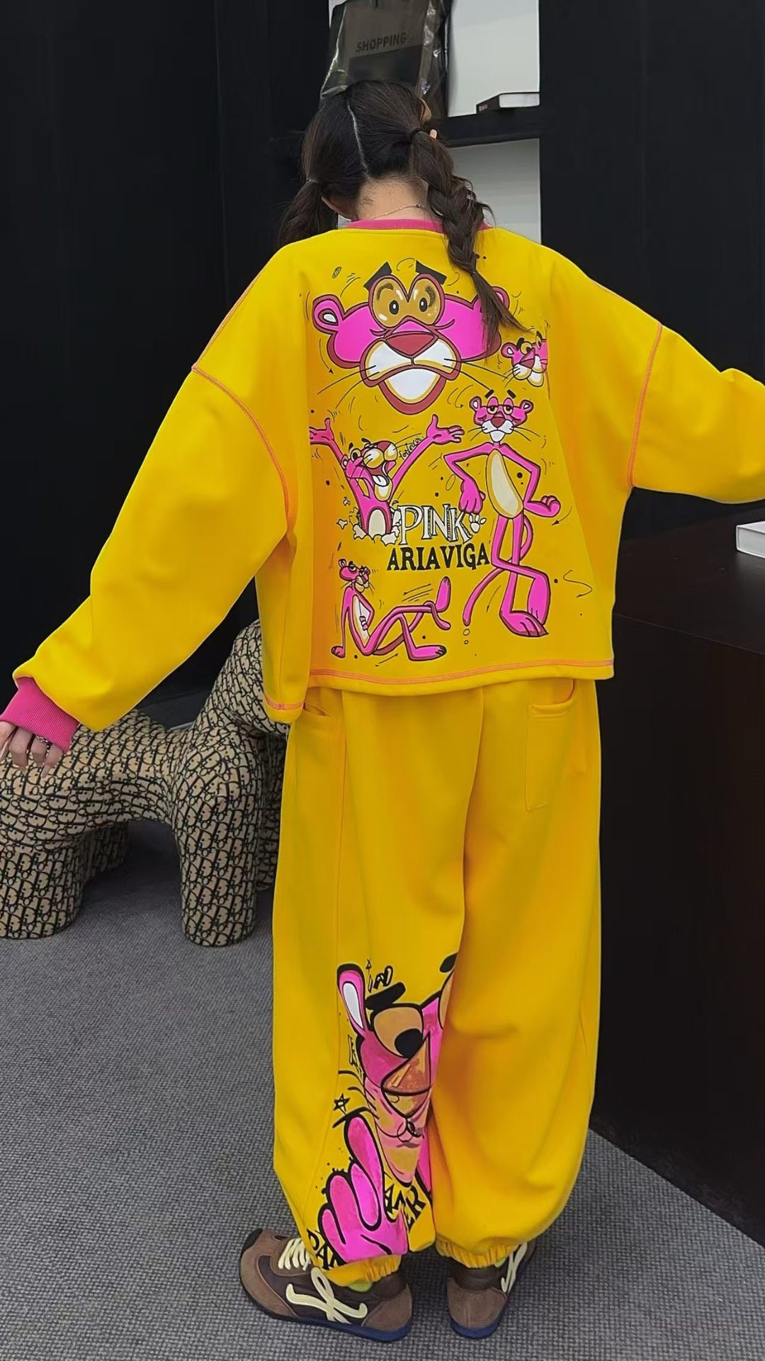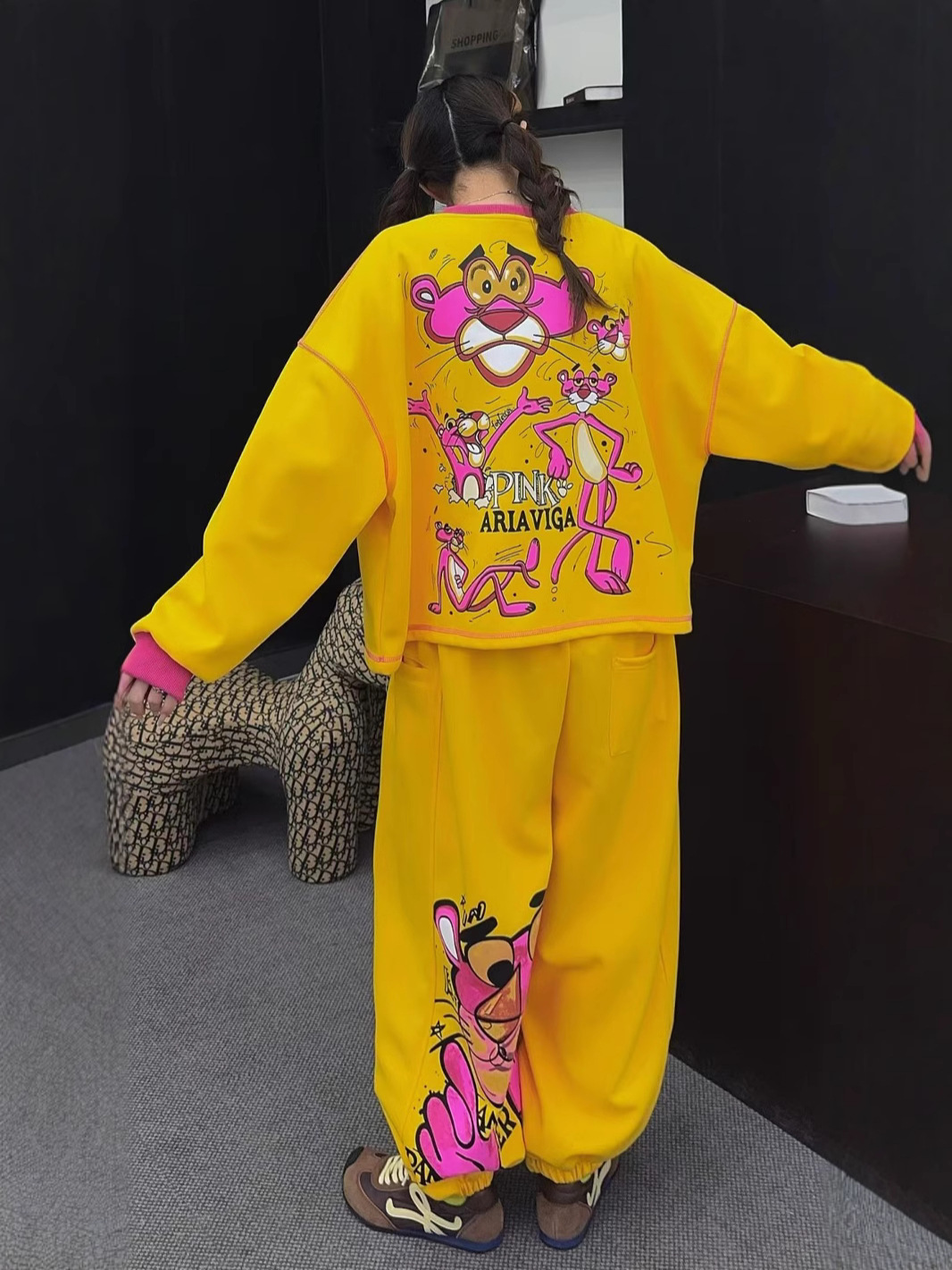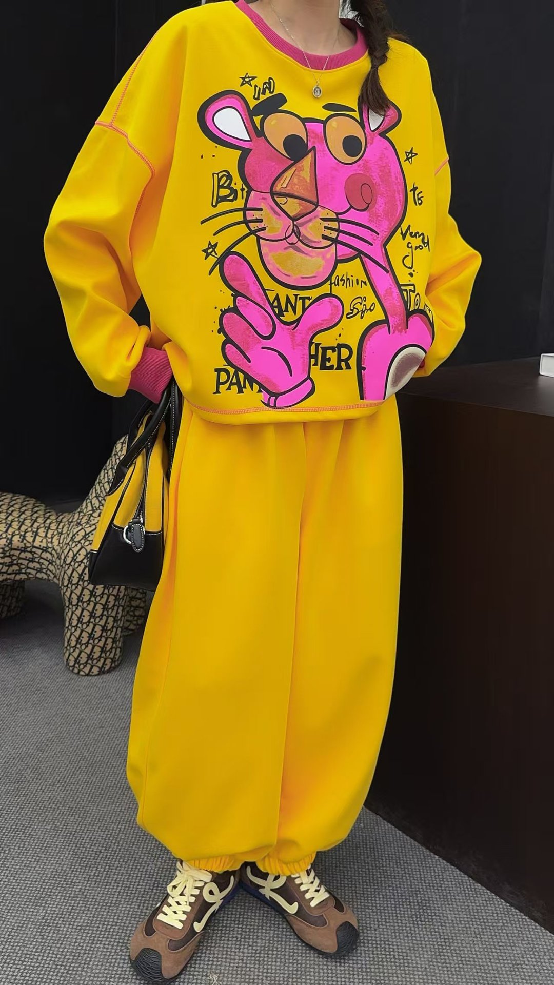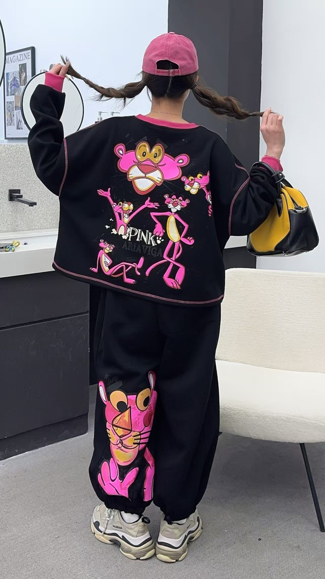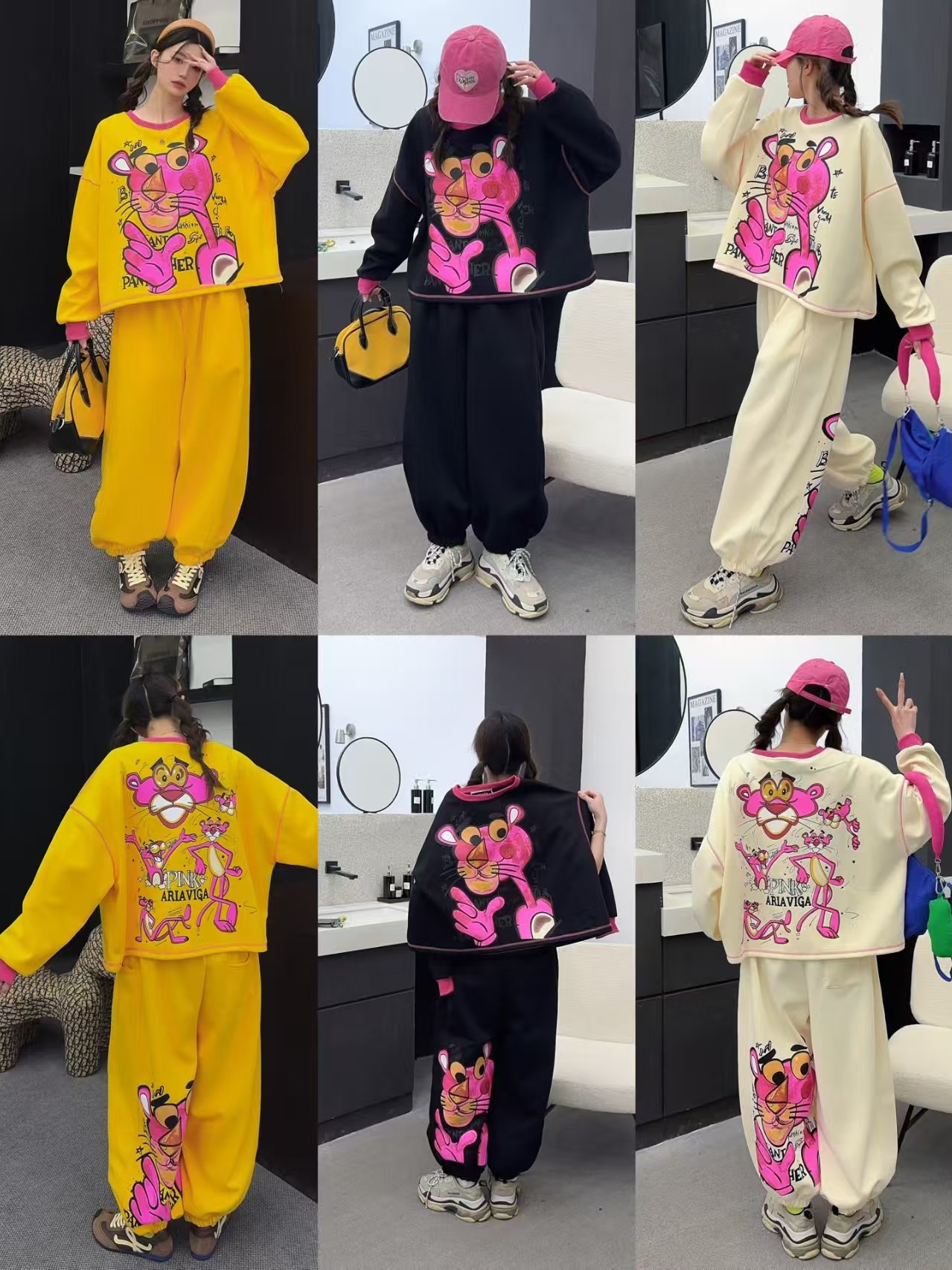 Реальная весенняя корейская версия набора больших размеров повседневная мода минус возраст милый мультяшный леопард узор свитерская брюки из двух частей