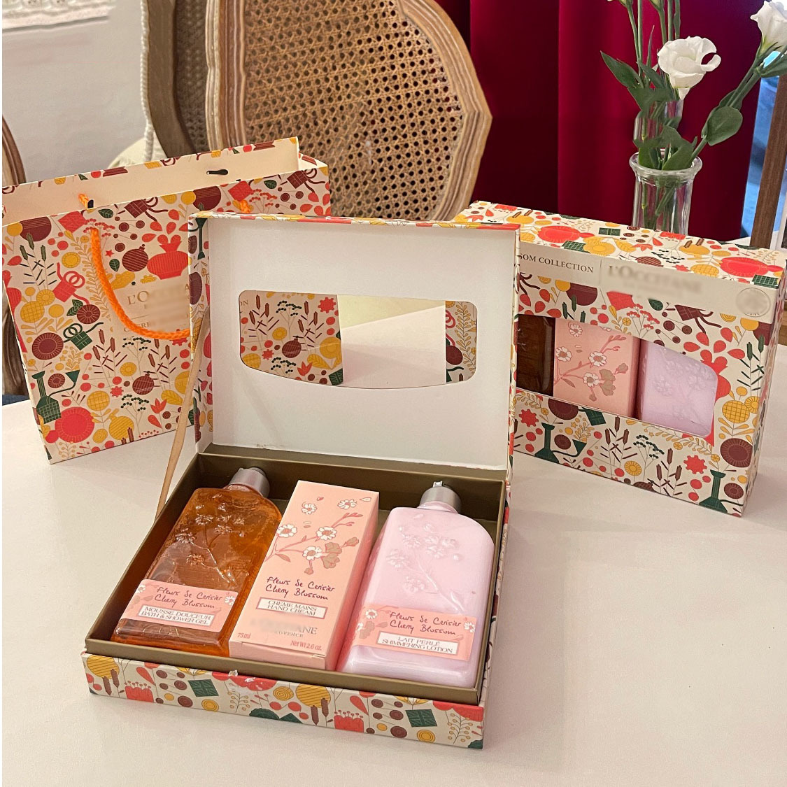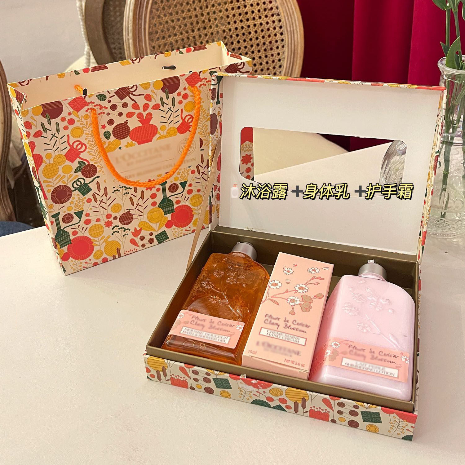 Oshujia Sakura Care Sunflower, подарочная коробка из трех предметов, гель для душа, крем для рук, лосьон для тела, праздничный сувенирный подарок