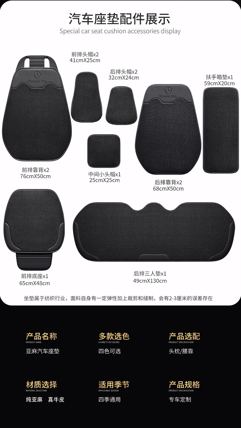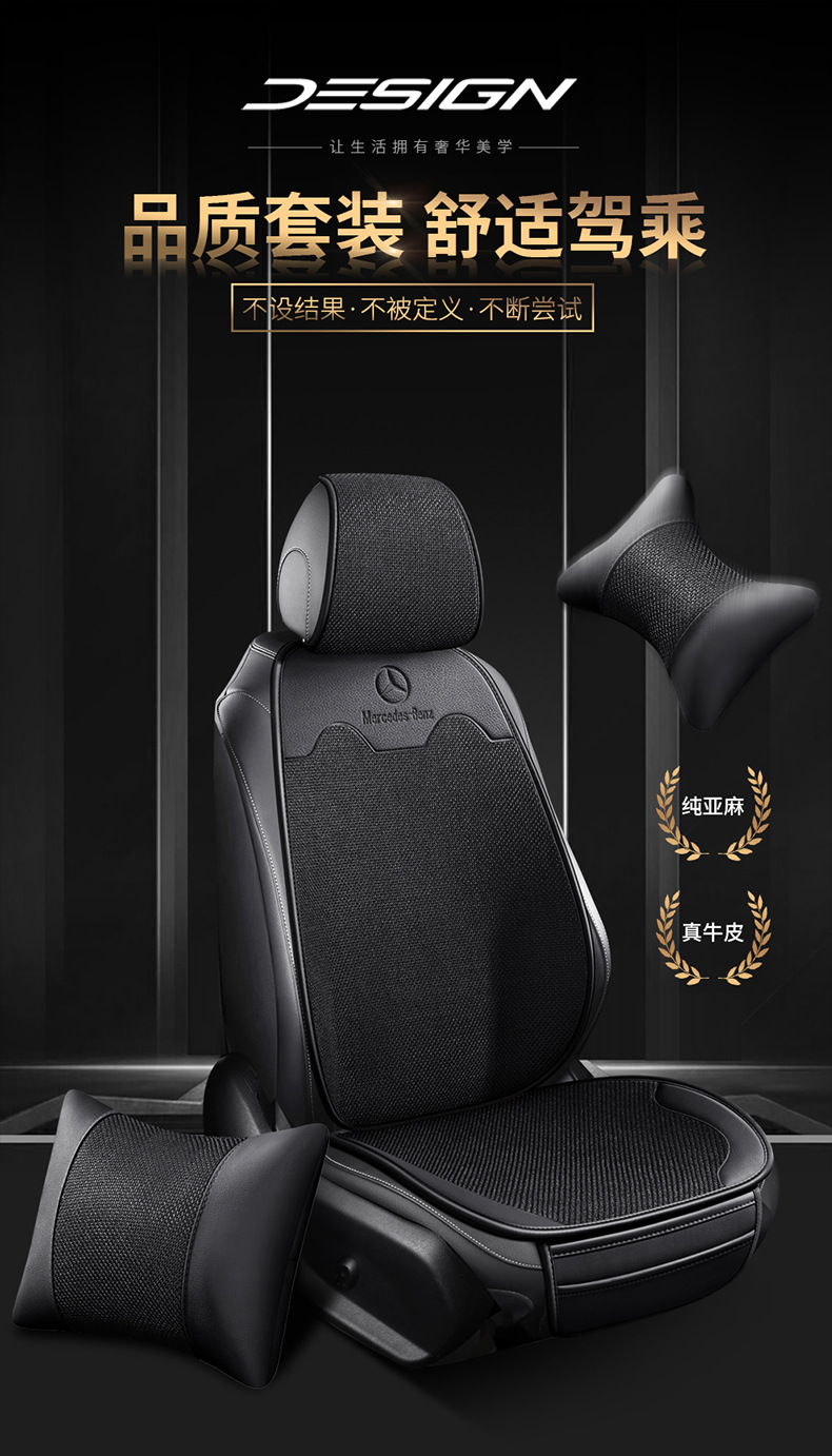 Чехлы для автомобильных сидений Mercedes-Benz A200 E300 из специальной кожи и льна, универсальные чехлы для всех сезонов, оптовая продажа и дропшиппинг напрямую от производителя.