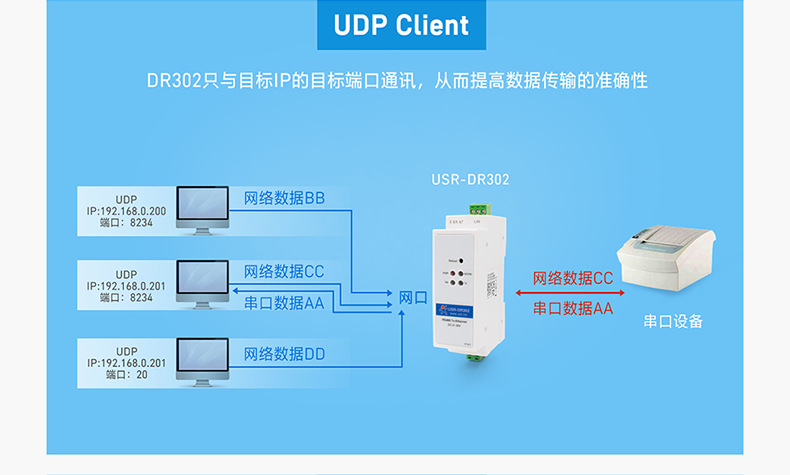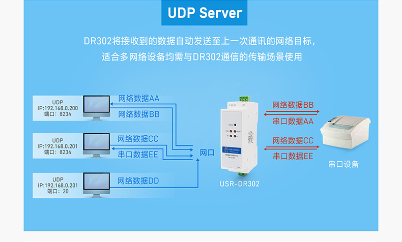 Сервер IoT для установки на DIN-рейку RS485/232 с двусторонней прозрачной передачей данных по Ethernet USR-DR302
