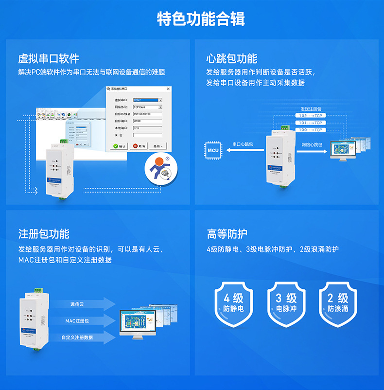 TCP Server/TCP Client/ UDP Server/UDP Client |