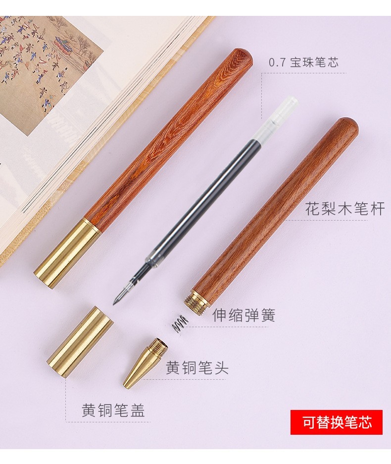 Высококачественная латунная ручка из сандалового дерева металлическая ручка с подписью деревянная ручка ретро бизнес подарочная ручка рекламная ручка с лазерным логотипом