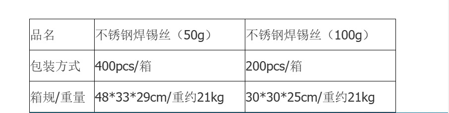 Сварочные стержни поставляются в упаковке по 3 шт.; Паяльная проволока 20г с маркировкой; Паяльная проволока 50г маркировка; Паяльная проволока 100г с маркировкой; Без этикетки 50г.
