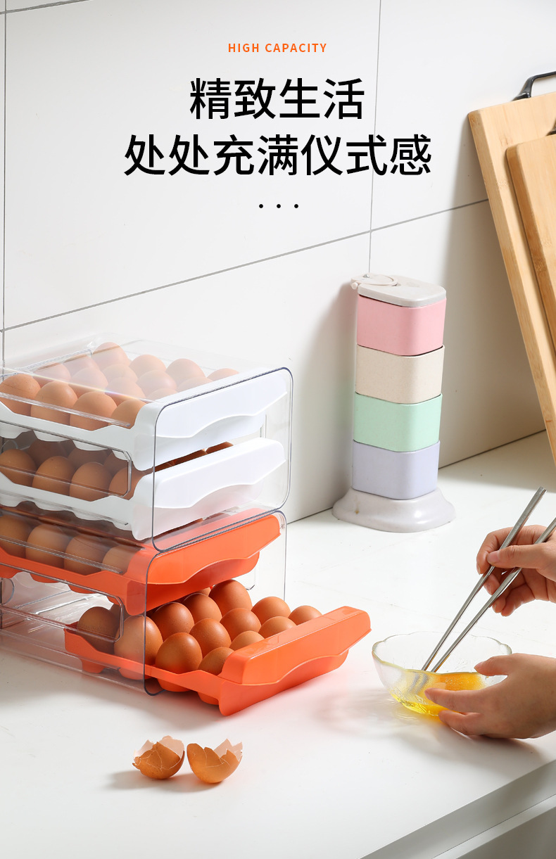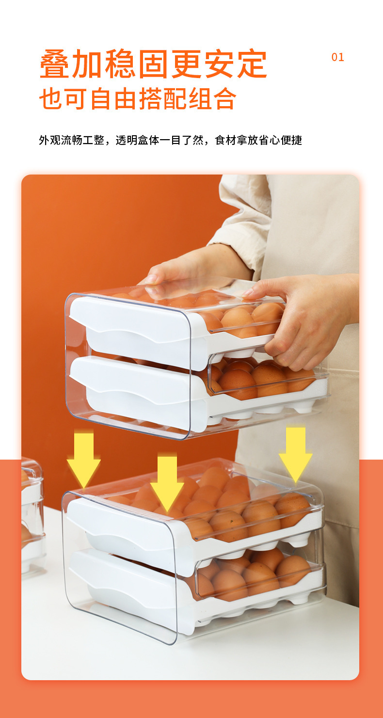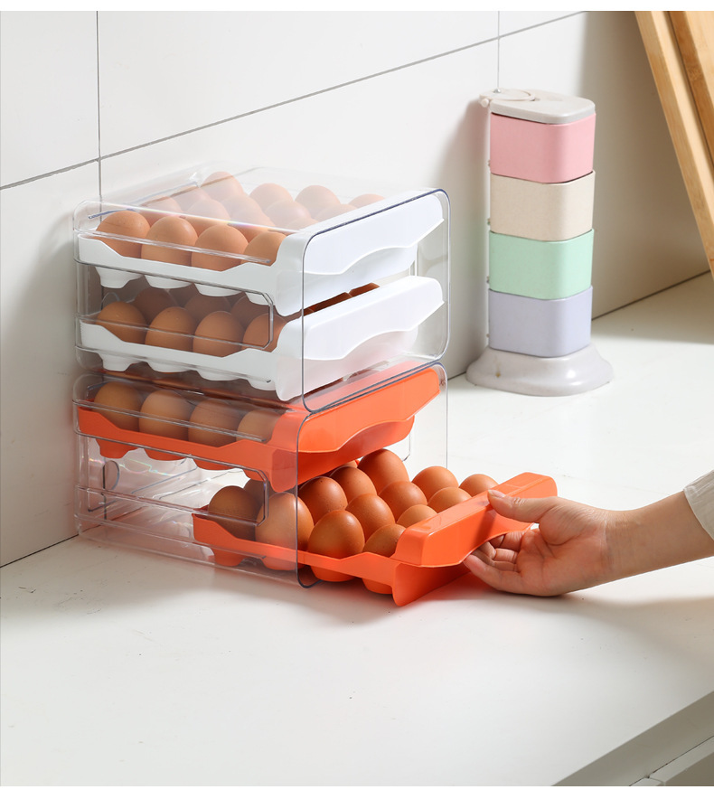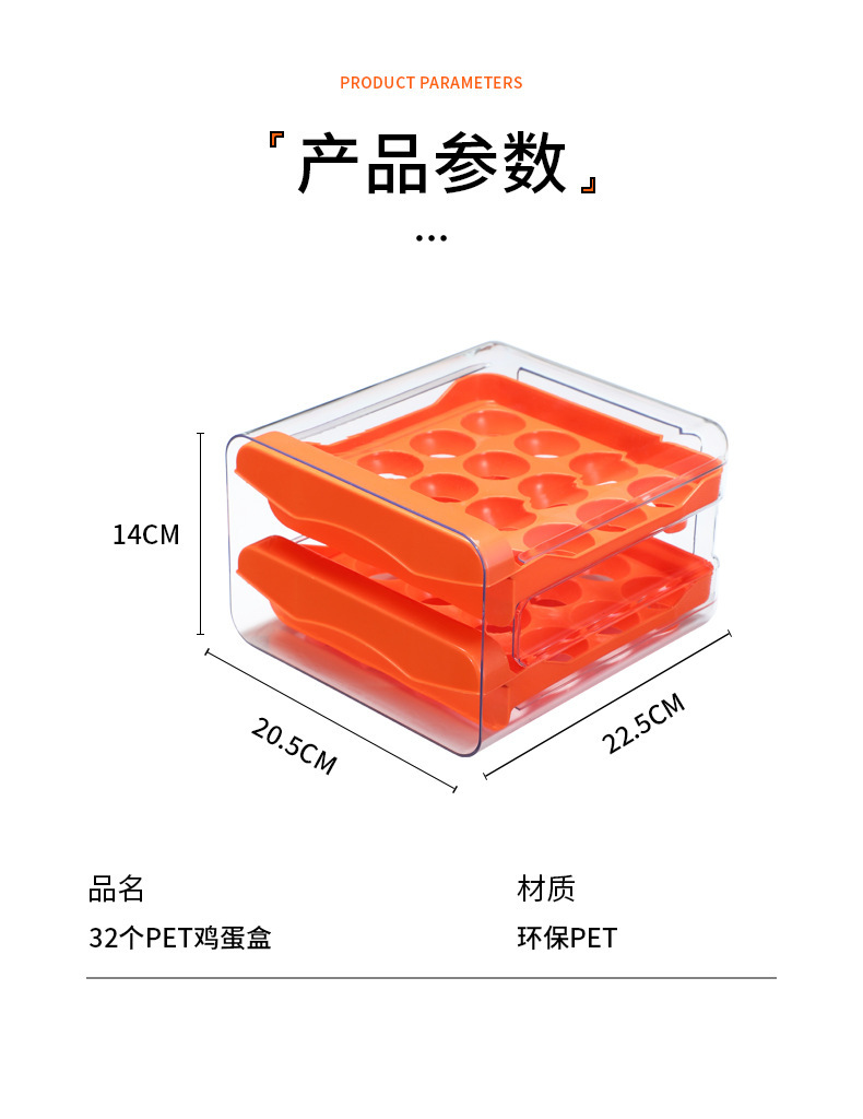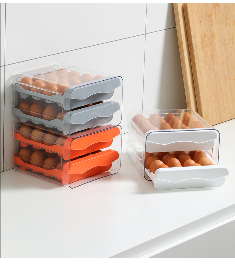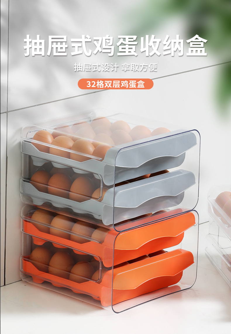 Ящик для хранения яиц в холодильнике, прозрачный ПЭТ, 32 сетки, двухслойный ящик для яиц, ящик для яиц, кухонный ящик для яиц