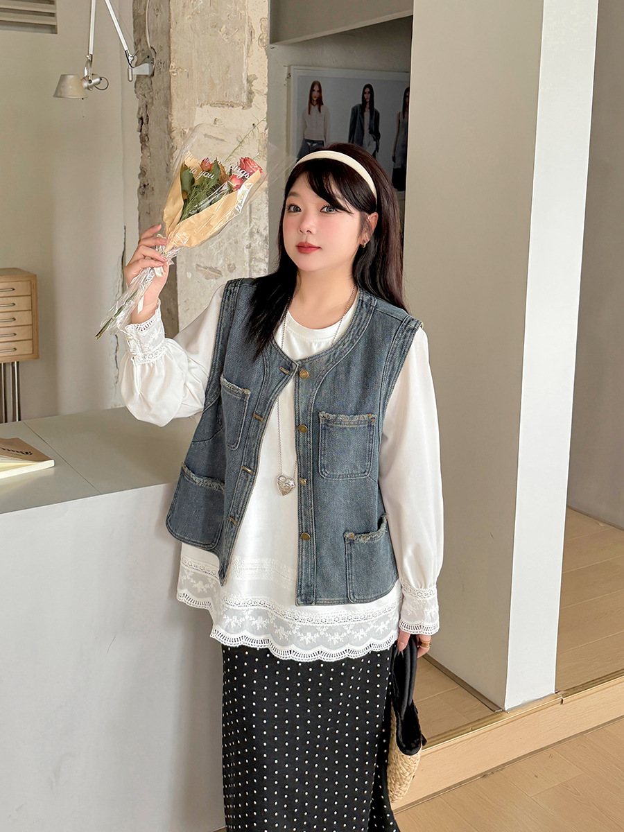 Двойной день плюс размер 200 кг толстая сестра 2025 весна и лето новый дизайн ретро круглый воротник джинсовый жилет YC165