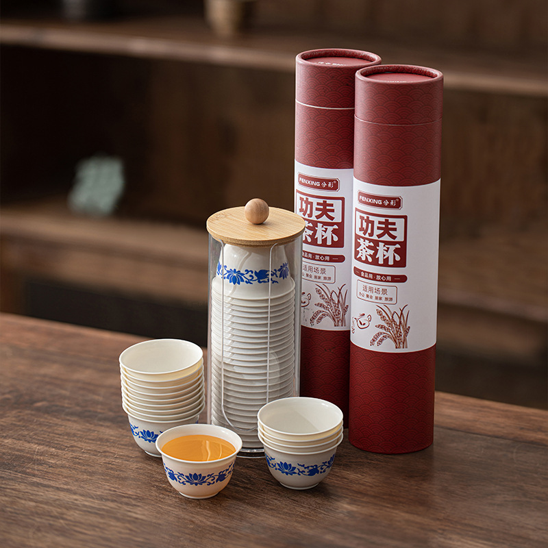 Сине-белая одноразовая чашка для чая из кукурузного крахмала для питья чая, утолщенная бытовая коммерческая высококачественная чашка для чая кунг-фу с защитой от ожогов для доставки