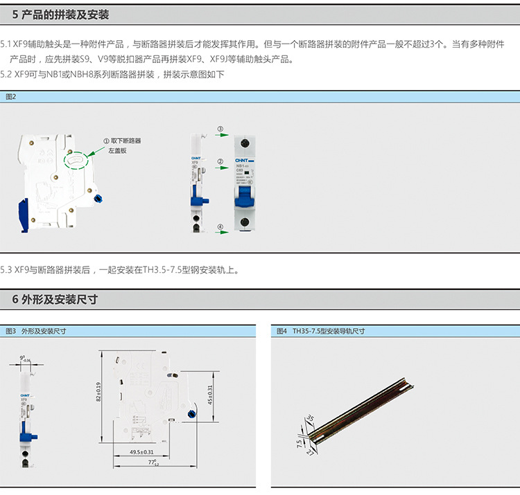 Chint Малый автоматический выключатель NB1 воздушный выключатель пустой открытый вспомогательный контакт XF9 нормально нормально закрытый боковой монтаж