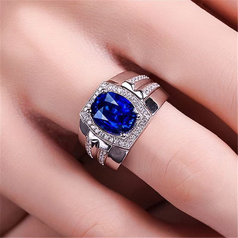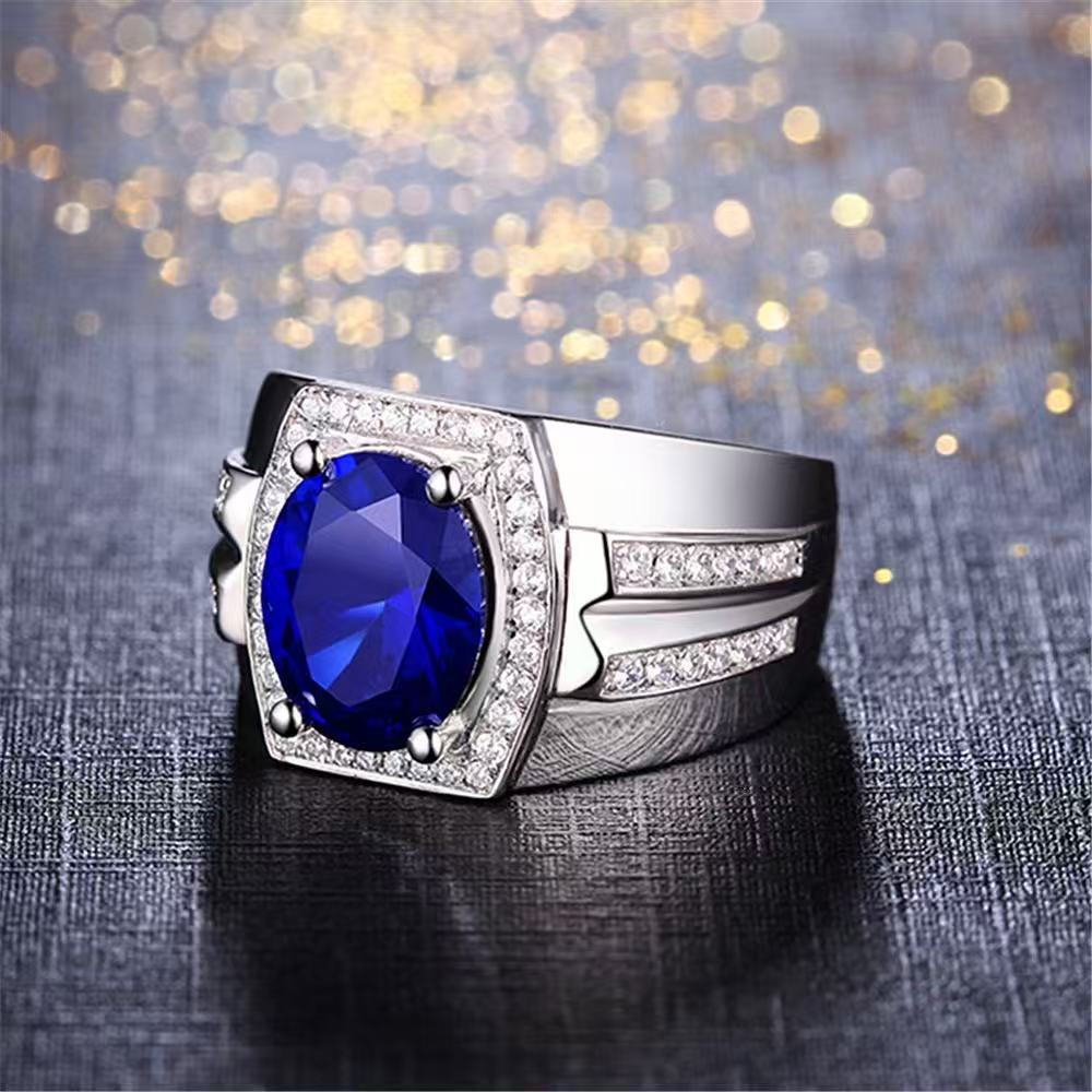 Горячая продажа бриллиантового синего бриллианта мужское кольцо Мьянма имитация натурального сапфирового кольца с покрытием 18-каратного золота