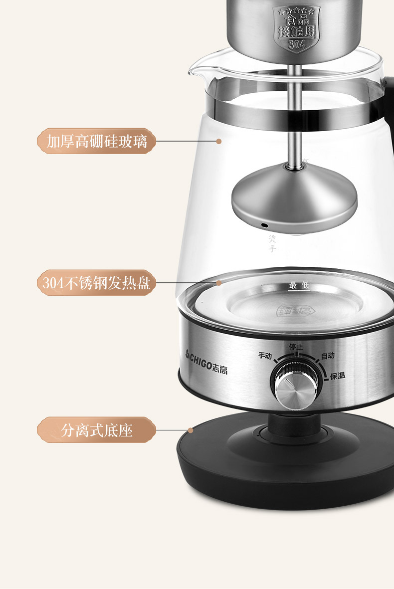 1-литровая модель с ручкой без функции сохранения тепла [бренд Chigo]; 1-литровая модель с ручкой и функцией сохранения тепла [бренд Chigo]; Модель с ручкой объемом 1 литр, с функцией сохранения тепла и двойным фильтром [бренд Chigo]; 1-литровая модель с ручкой без функции сохранения тепла [бренд AUX]; 1-литровая модель с ручкой и термоизоляцией [бренд AUX]