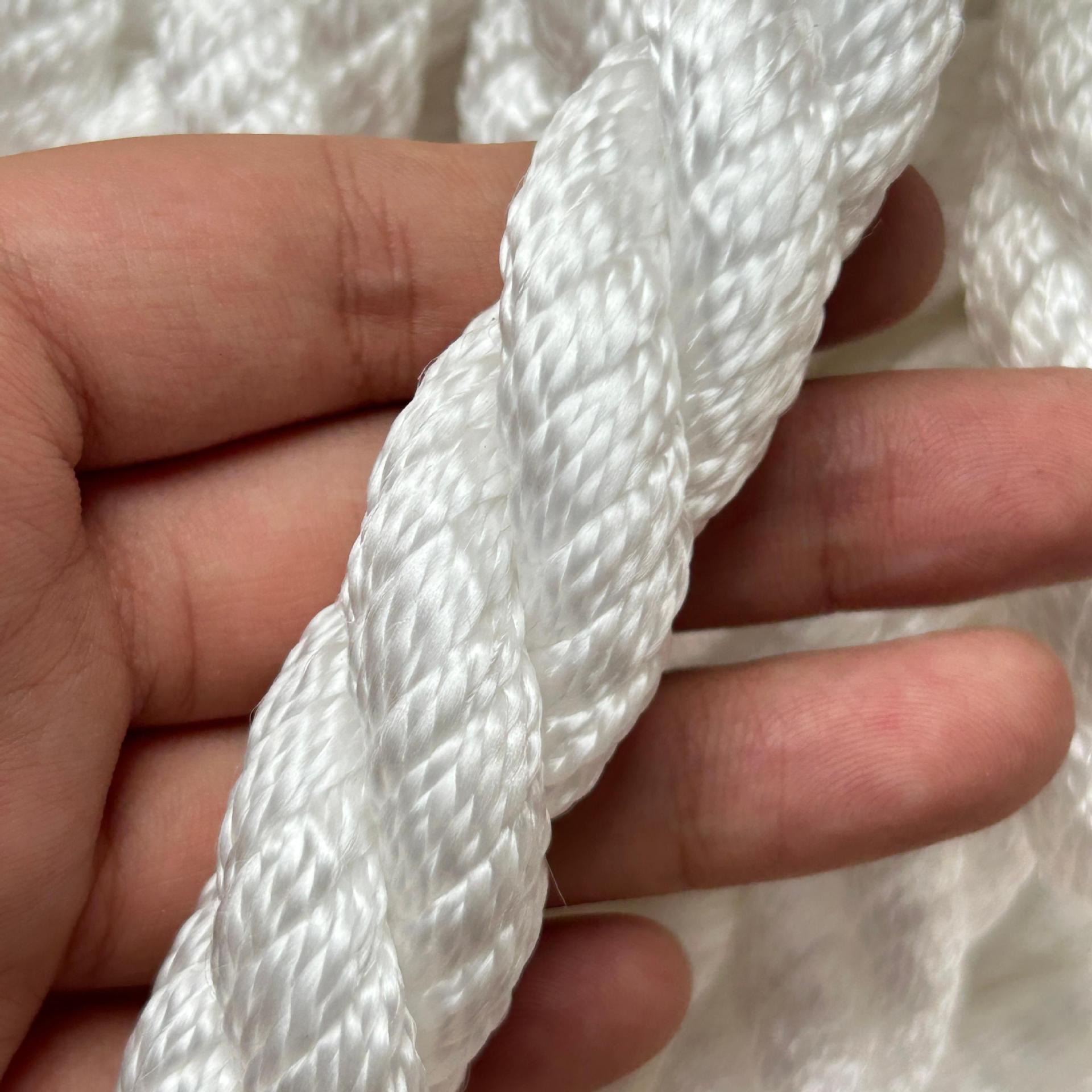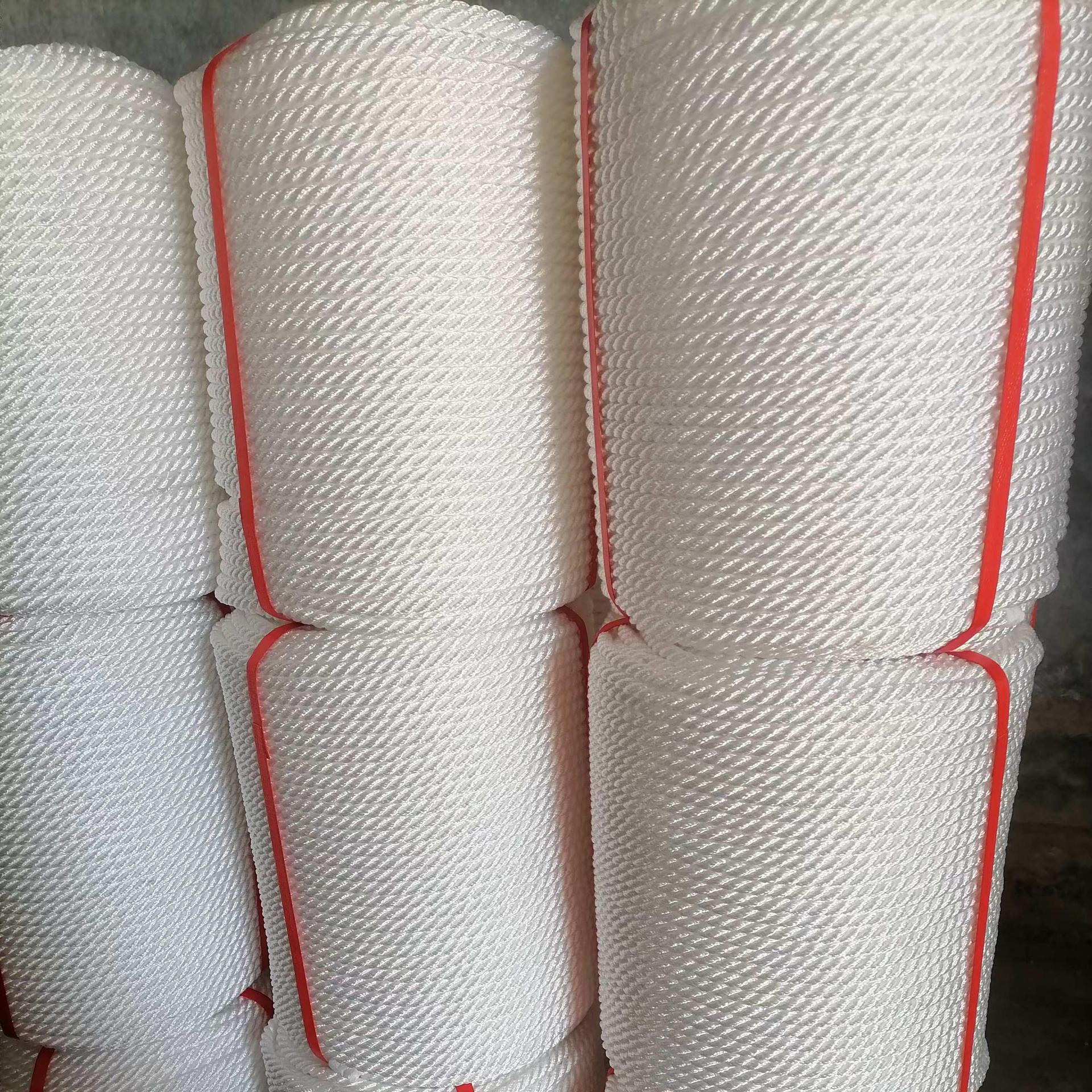 Морской кабель, кислото- и щелочестойкий трехпрядный канат, полипропиленовый (ПП) обвязочный канат, нейлоновый канат, устойчивый к торможению, износостойкий и долговечный.