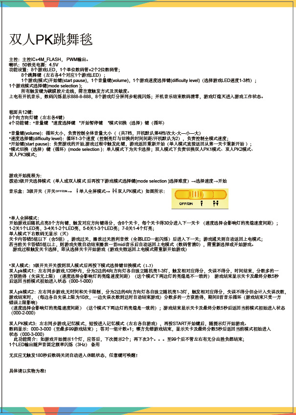 双人PK跳舞毯展开尺寸:102*100*2CM