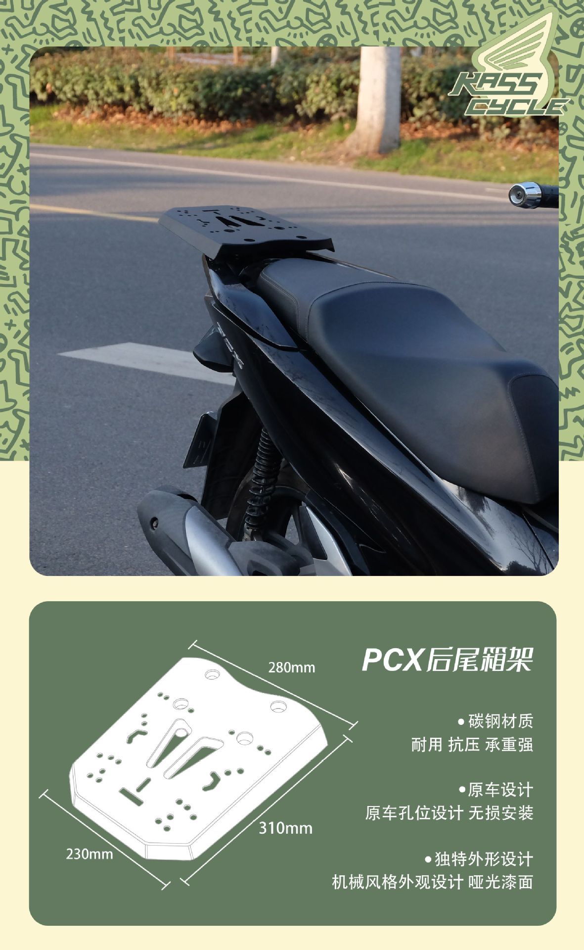 Усиленная задняя стойка для багажника, подходит для Honda PCX160/150/125, кронштейн для кофра KF18JF56, багажник для грузов