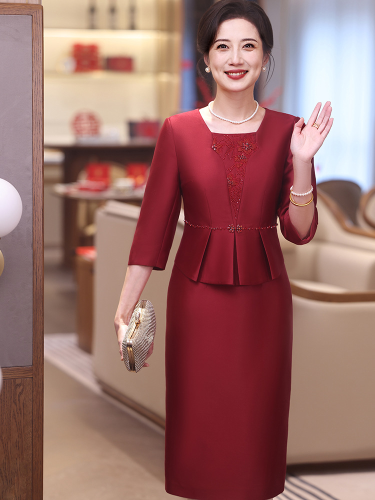 Мамочка летняя мода костюм Мамочка праздничная мода темперамент тощий свадебный костюм мамочки 96