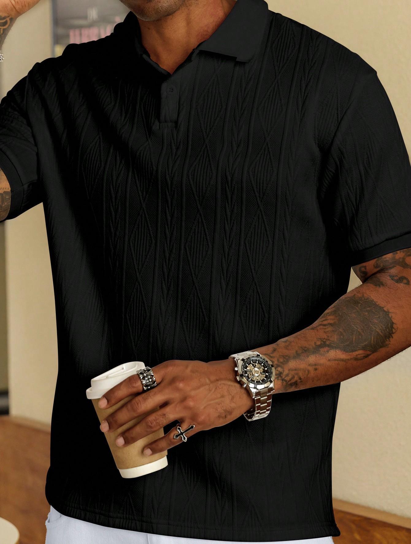 Летняя новая европейская и американская трансграничная мужская рубашка с короткими рукавами жаккардовой рубашки поло Amazon мужская рубашка с отворотом текстуры