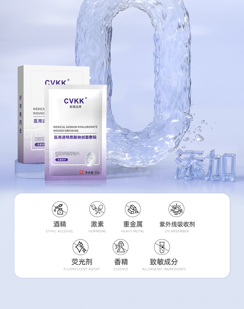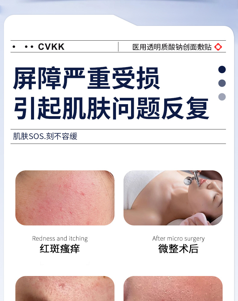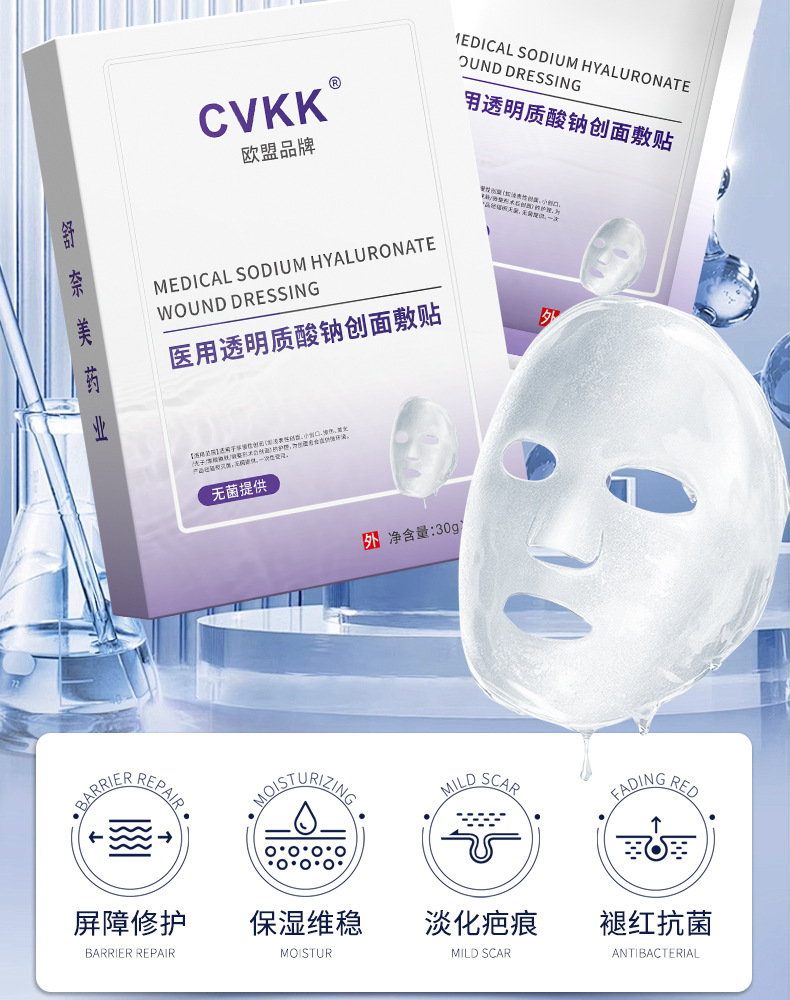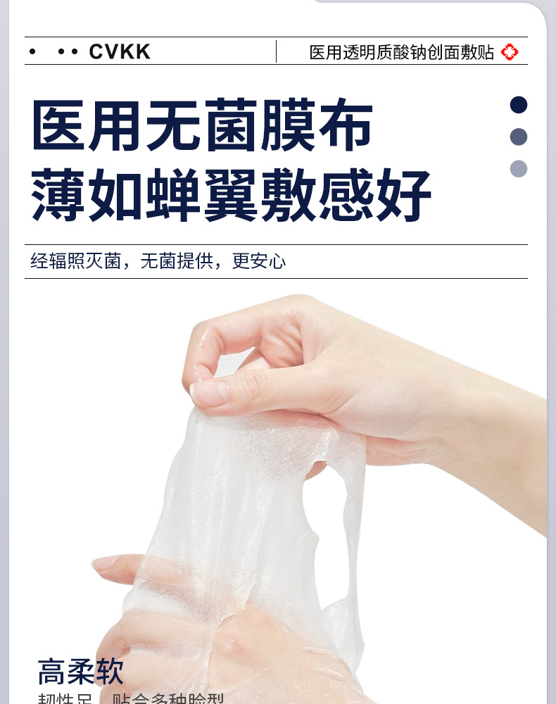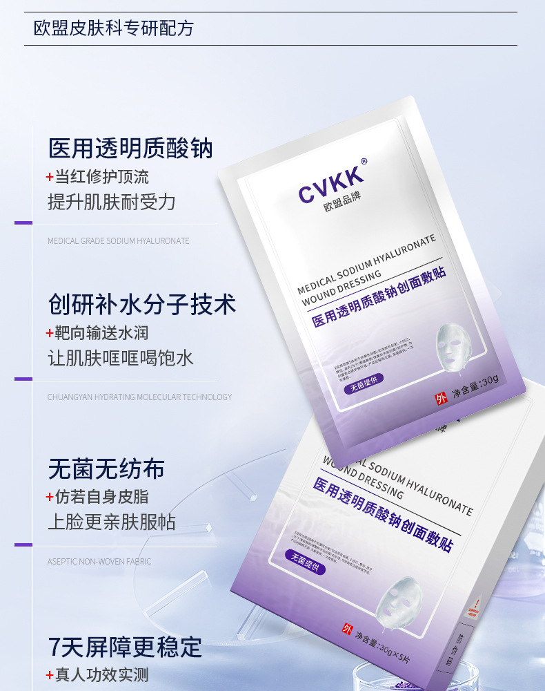 Медицинский холодный компресс-патч с гиалуронатом натрия медицинского класса от европейского бренда CVKK, тип «микроиглы», с коллагеновой медицинской пленкой для косметологии.