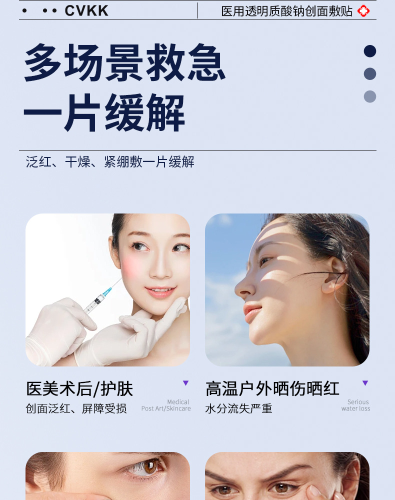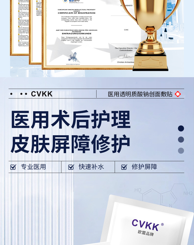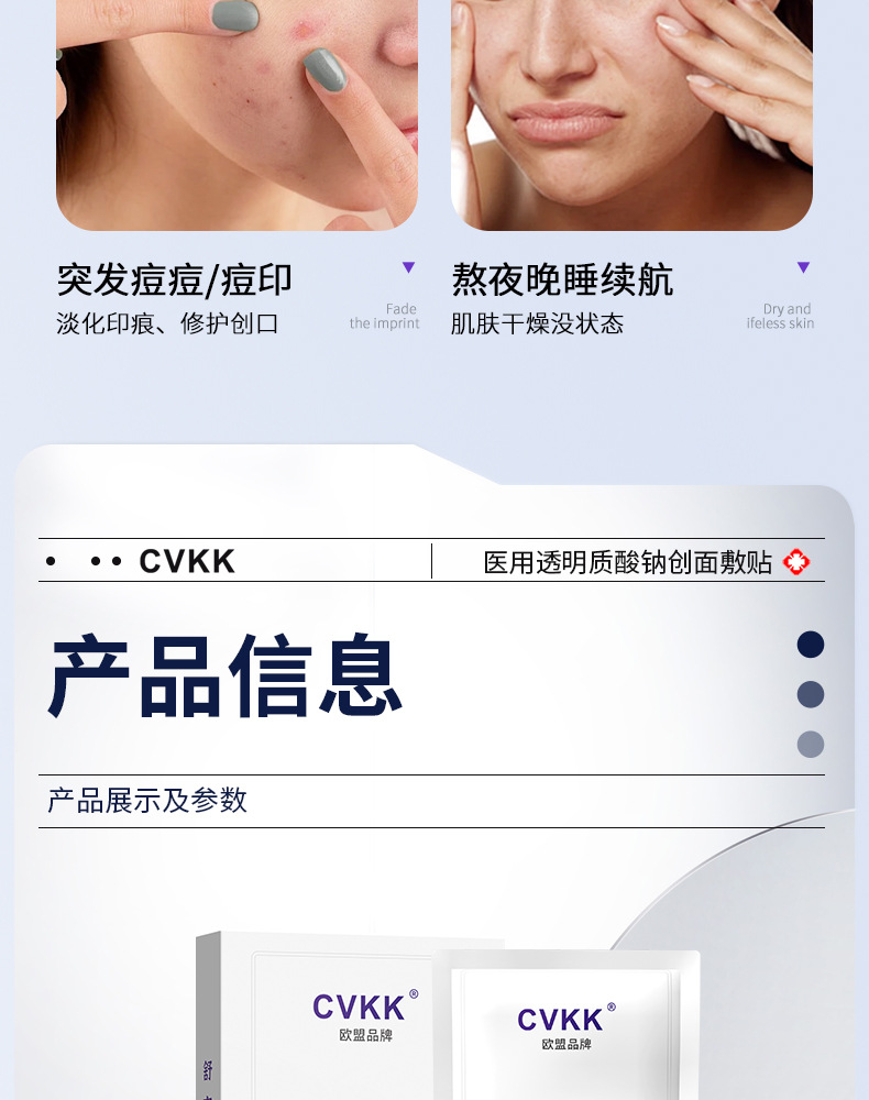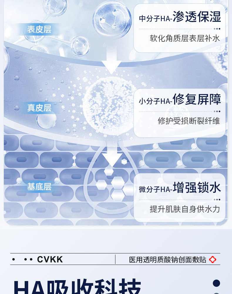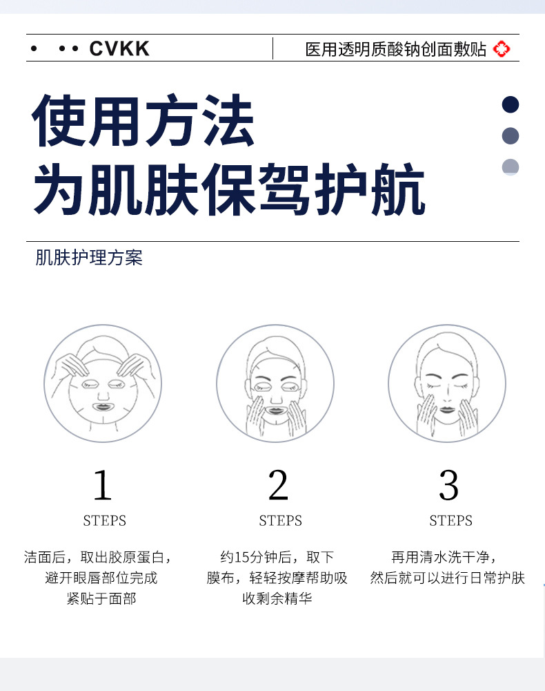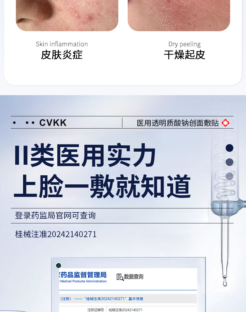 Медицинский холодный компресс-патч с гиалуронатом натрия медицинского класса от европейского бренда CVKK, тип «микроиглы», с коллагеновой медицинской пленкой для косметологии.