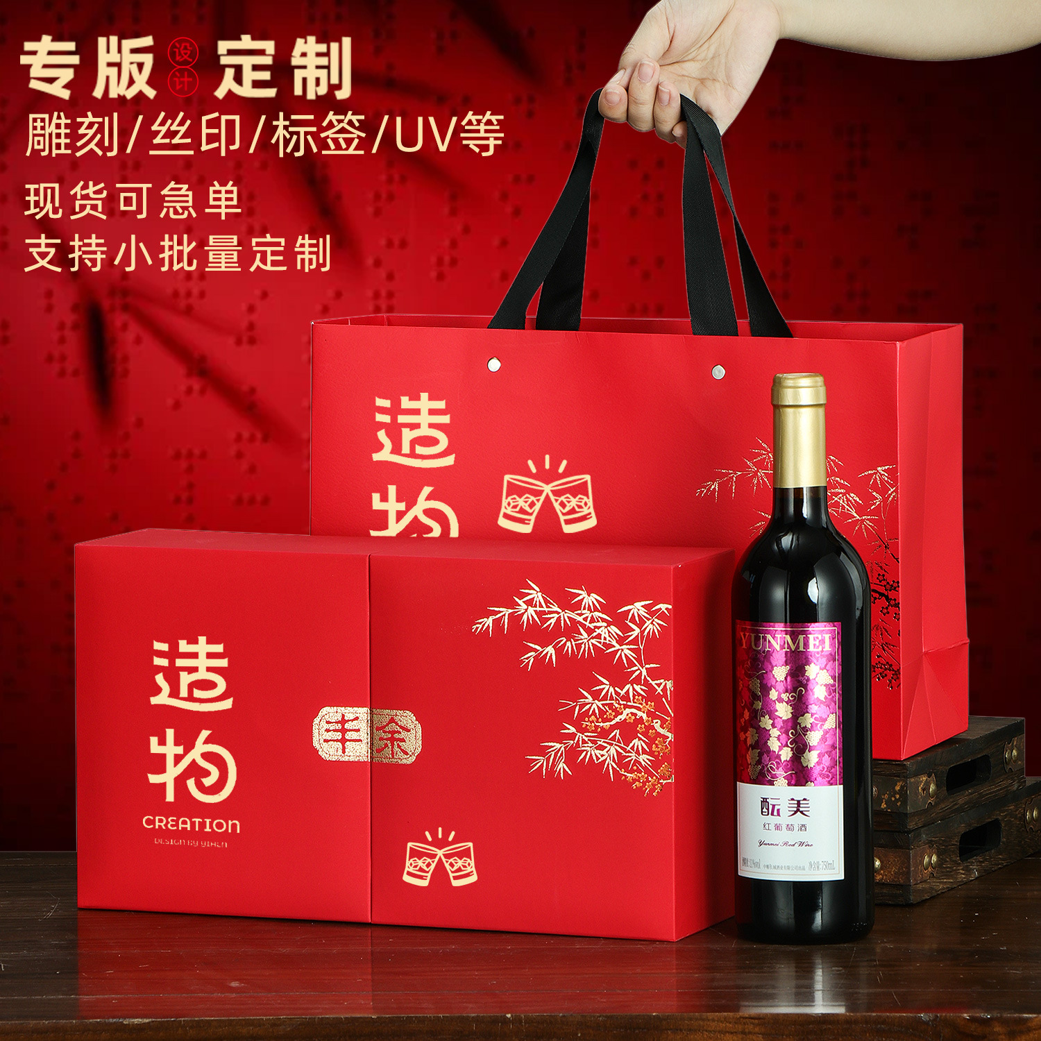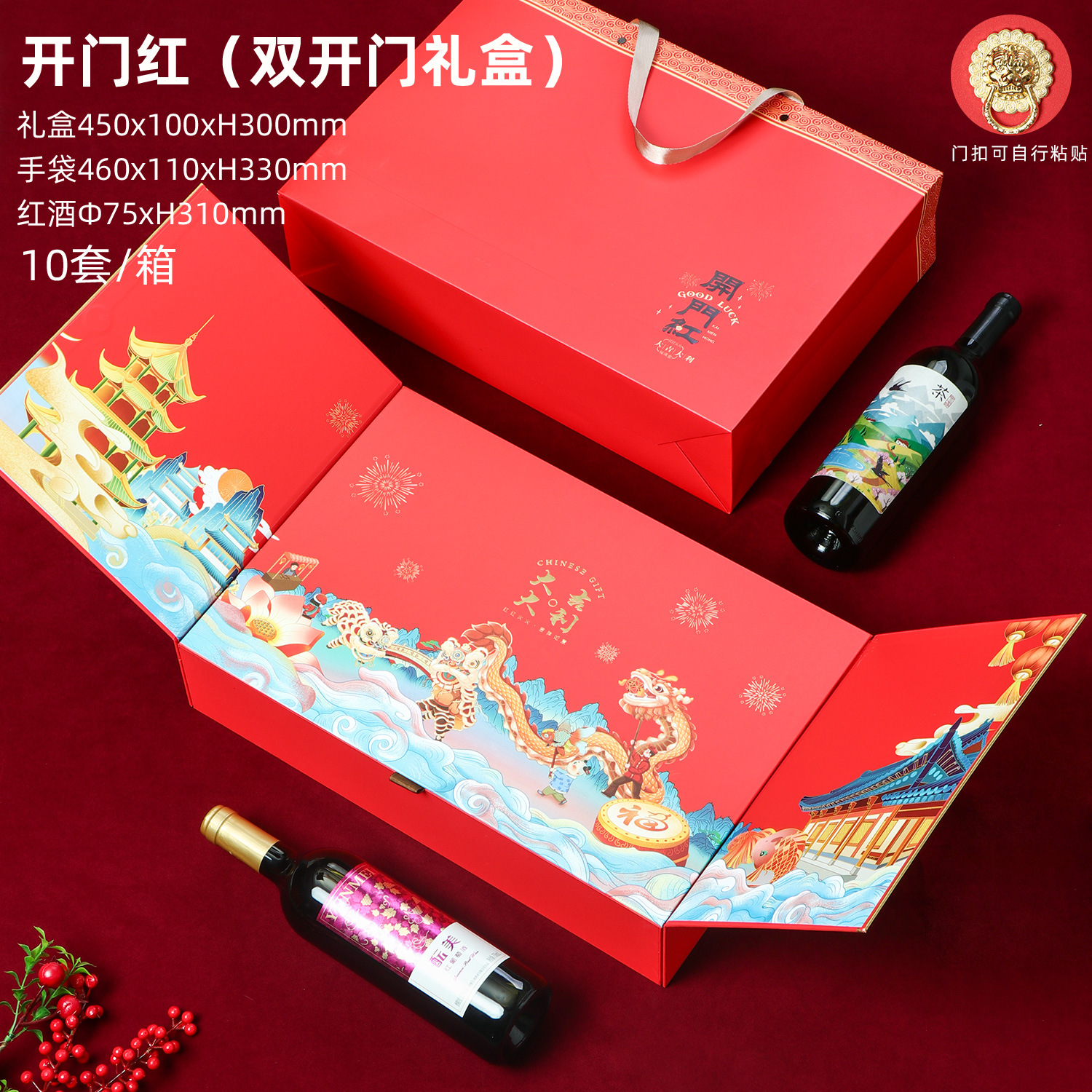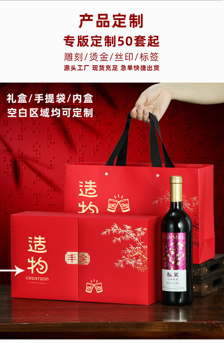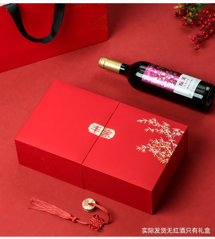 Подарочная коробка для фестиваля середины осени, одинарная коробка для красного вина, пустая коробка, упаковочная коробка с двумя дверцами, готовая для дизайна логотипа