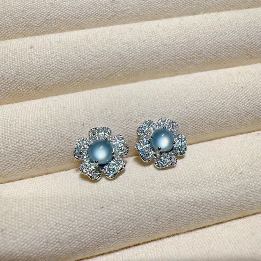 Кольцо с синим цветом воды S925, инкрустированное серебром; Серьги-гвоздики S925 с серебряной инкрустацией из изумрудно-голубой воды